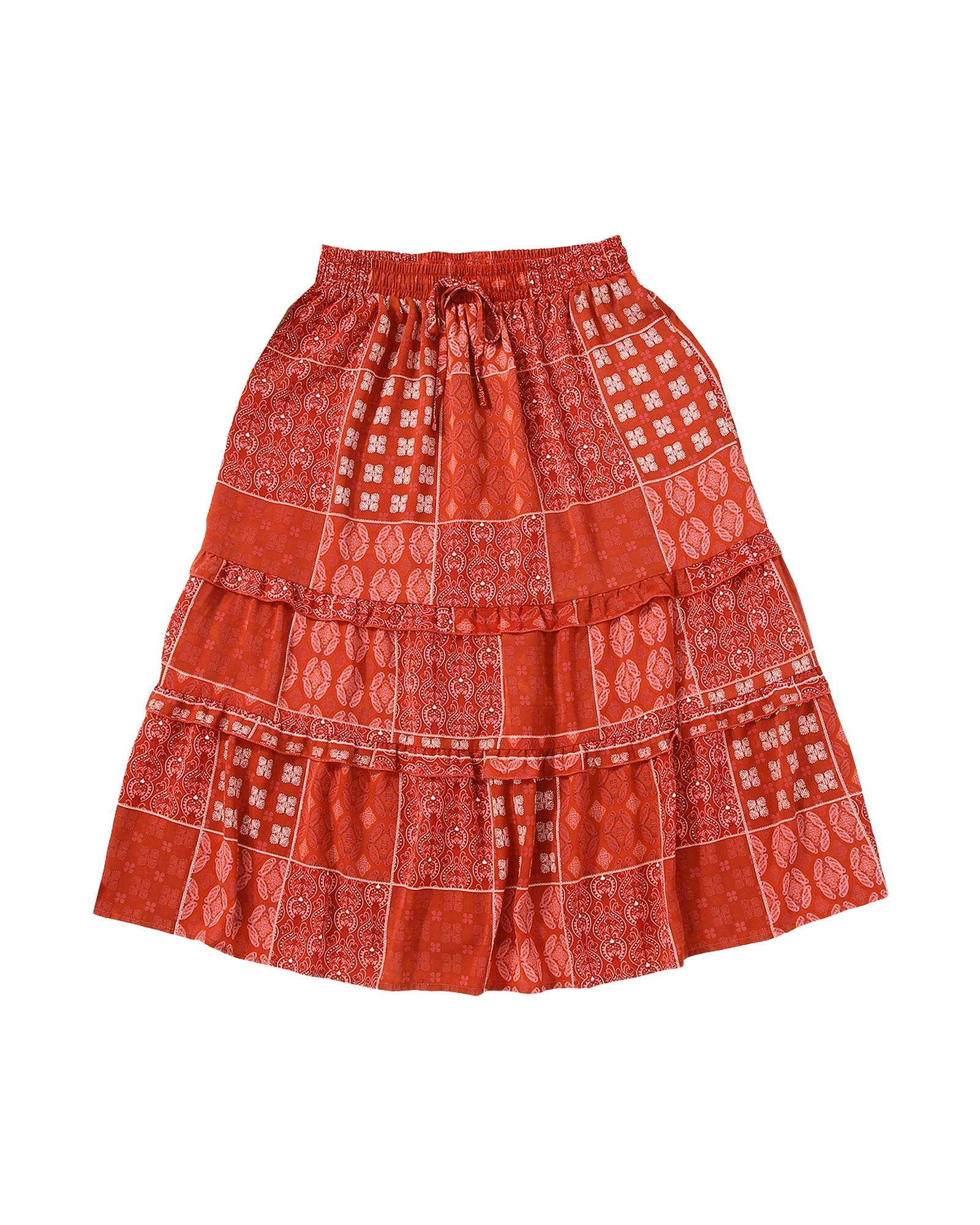 Red Bohemian Mix Print Long Flared Skirt – M