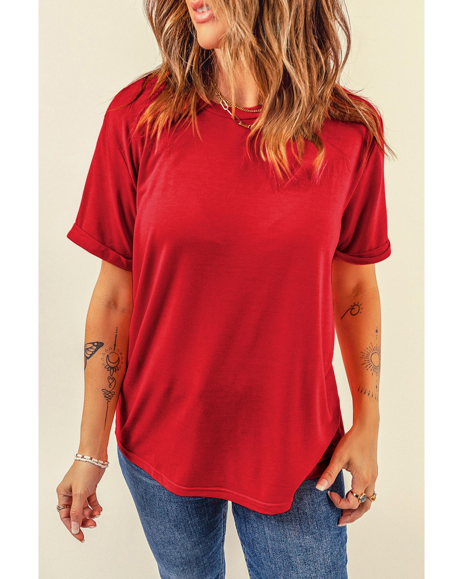 This casual plain crew neck T-shirt offers a stylish and comfortable option for everyday wear. Designed with a trendy fitted look, it is suitable for hot summer days and features a concise, chic design. Available in a variety of colors and sizes, it provides a versatile choice for both men and women.