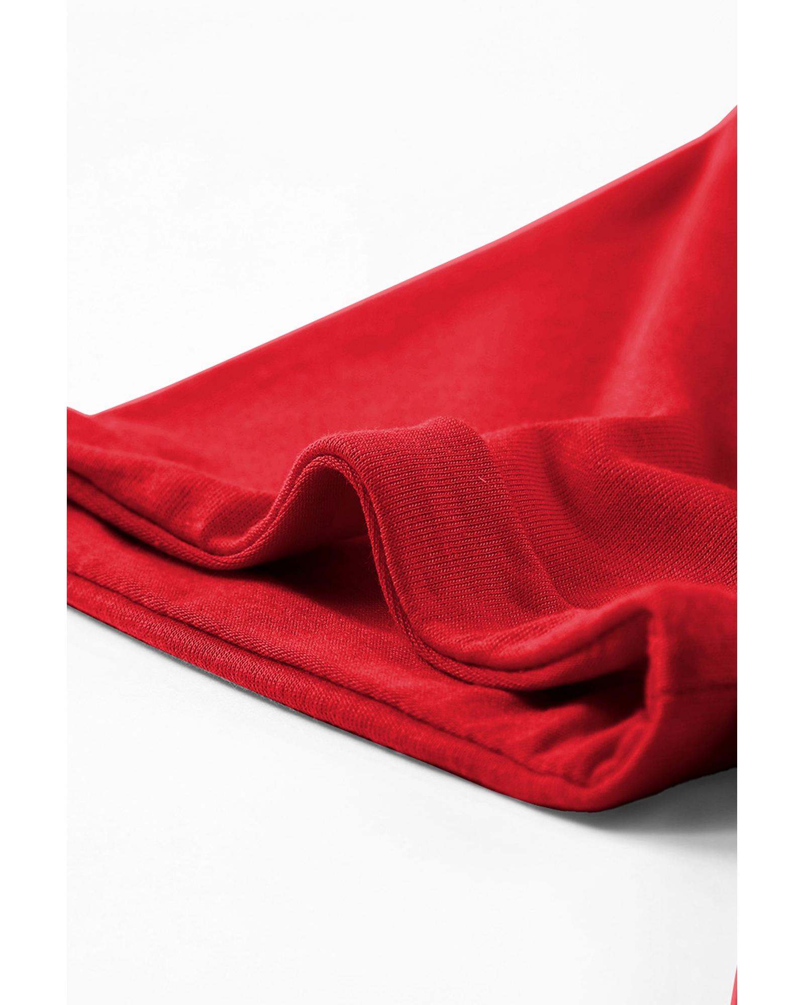 Red Casual Plain Crew Neck Tee – L