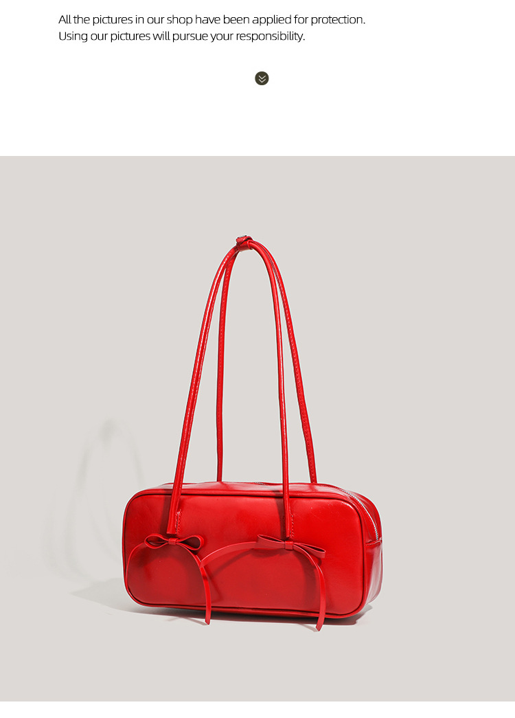 Red Chic PU Leather Baguette Shoulder Bag – Elegant Bow Accent Underarm Handbag for Women