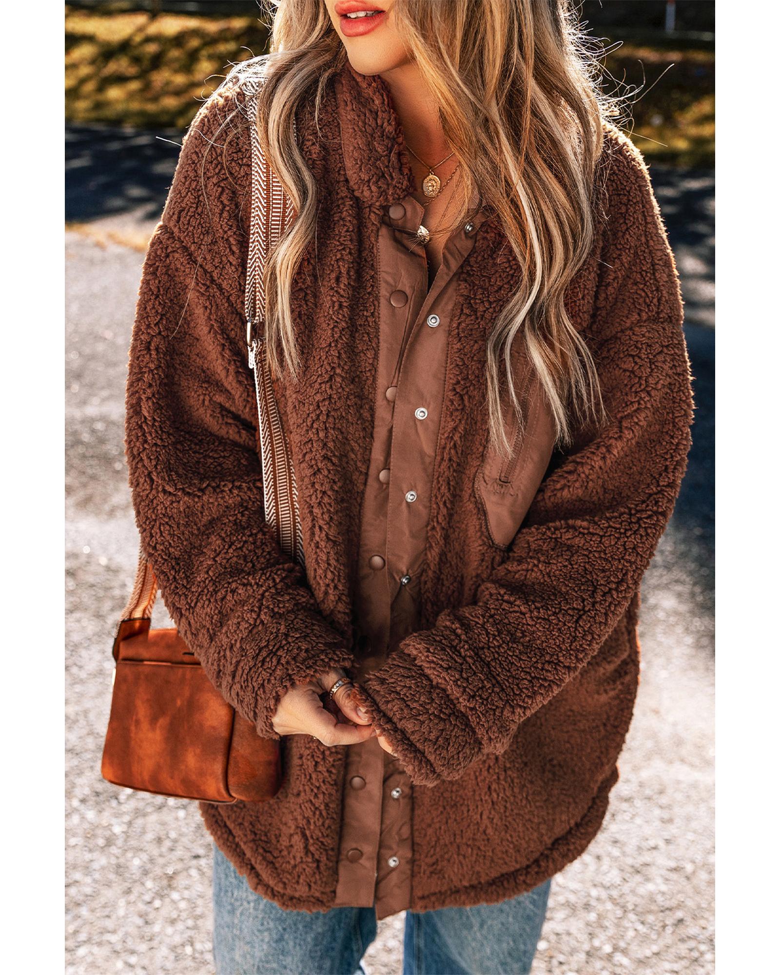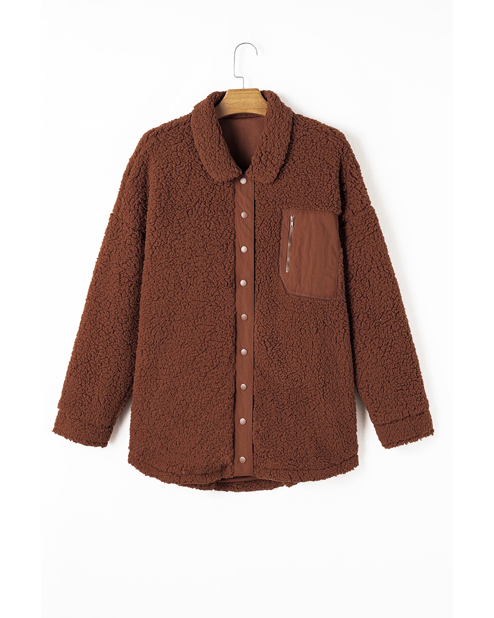 This faux shearling teddy bear jacket offers a trendy and cozy style, perfect for staying warm and fashionable. Its playful teddy bear design adds a charming touch to any outfit, making it a versatile addition to your wardrobe.