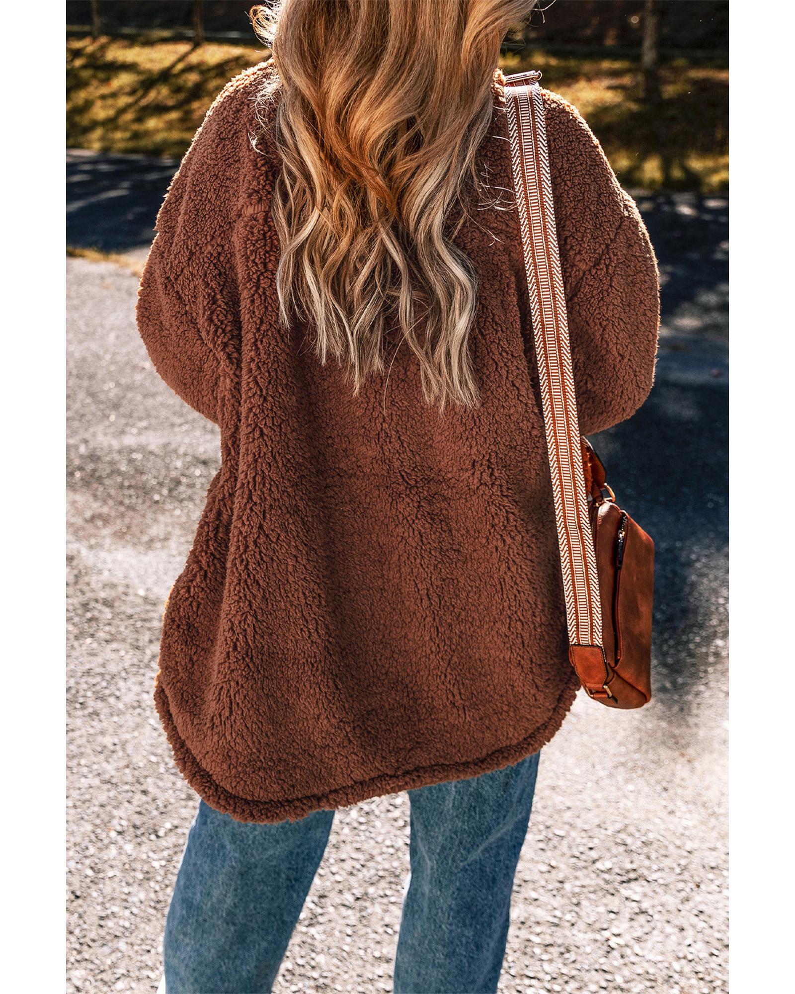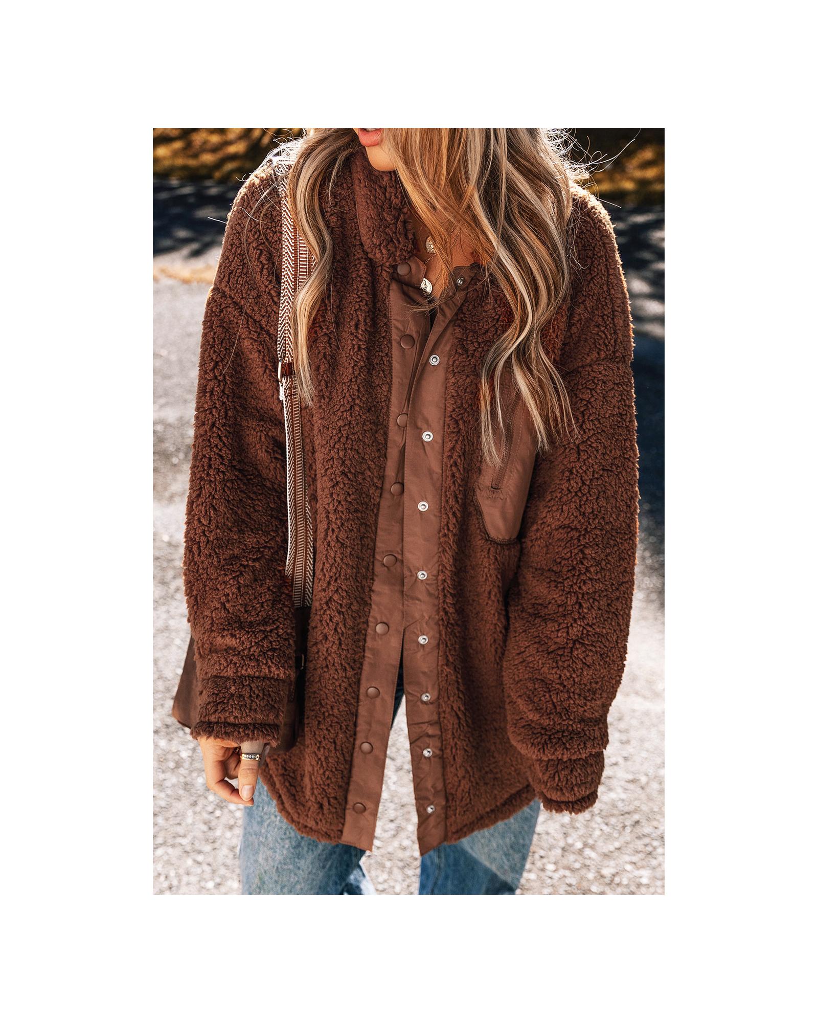 This faux shearling teddy bear jacket offers a cozy and stylish addition to your wardrobe. Designed with a trendy fitted silhouette, it combines warmth, comfort, and playful fashion elements, making it suitable for various casual occasions.