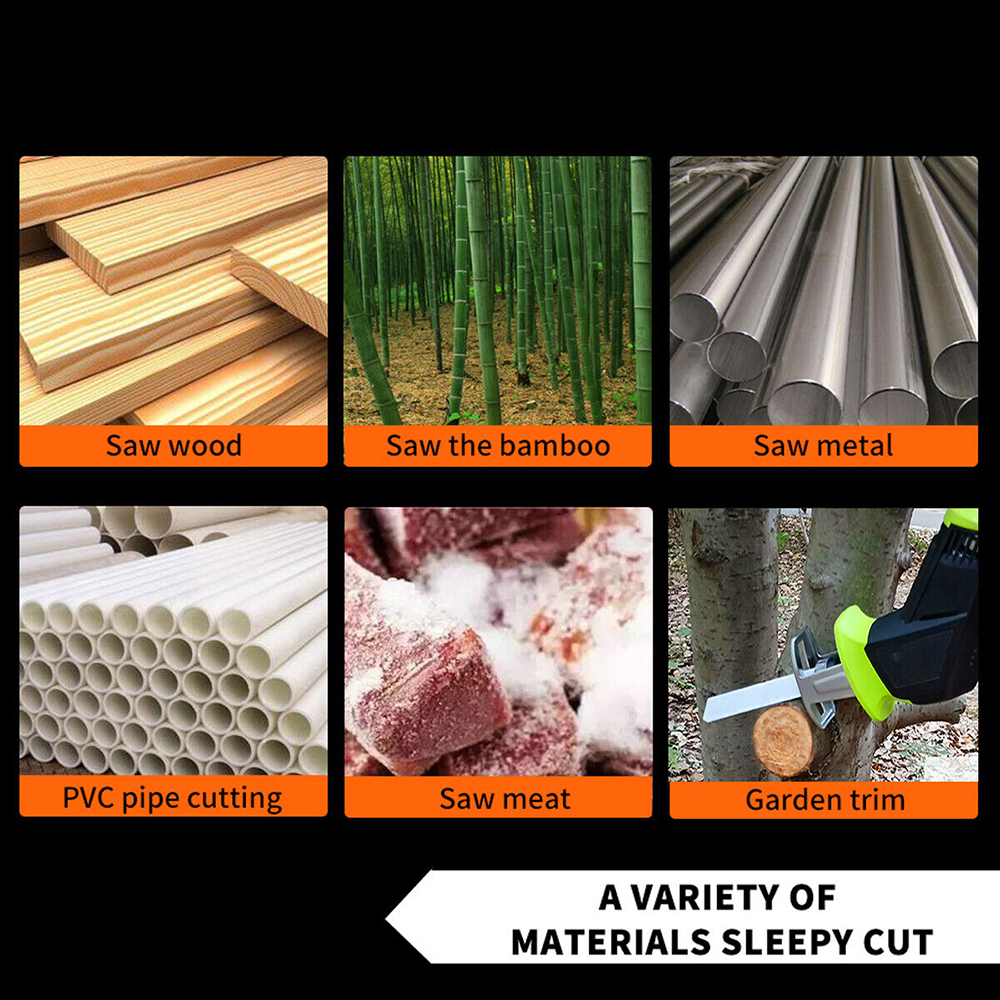This cordless electric reciprocating saw cutter is designed for efficient cutting tasks with high power and versatile features. It is compatible with 18V batteries and offers a comfortable ergonomic handle for ease of use. The saw includes a variable speed trigger, tool-less blade change system, and a newly designed crank mechanism to enhance performance.