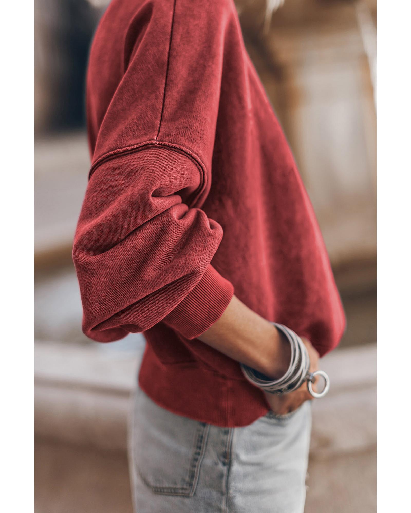 Red Dahlia Drop Shoulder Crew Neck Pullover Sweatshirt – 2XL