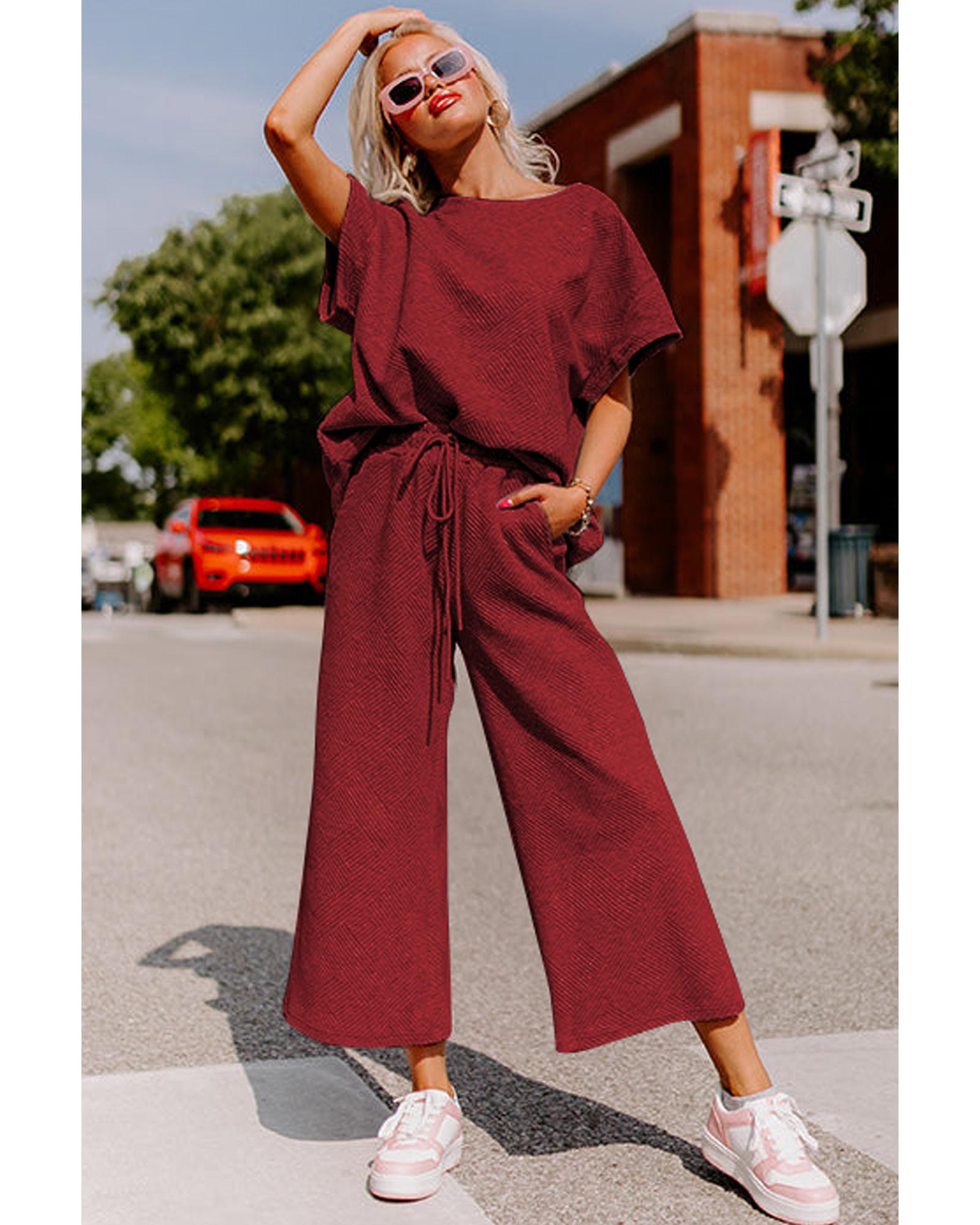 Red Dahlia Textured Loose Fit T Shirt and Drawstring Pants Set – M