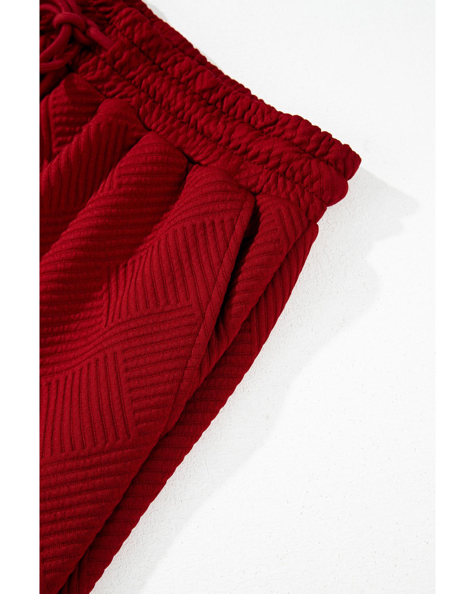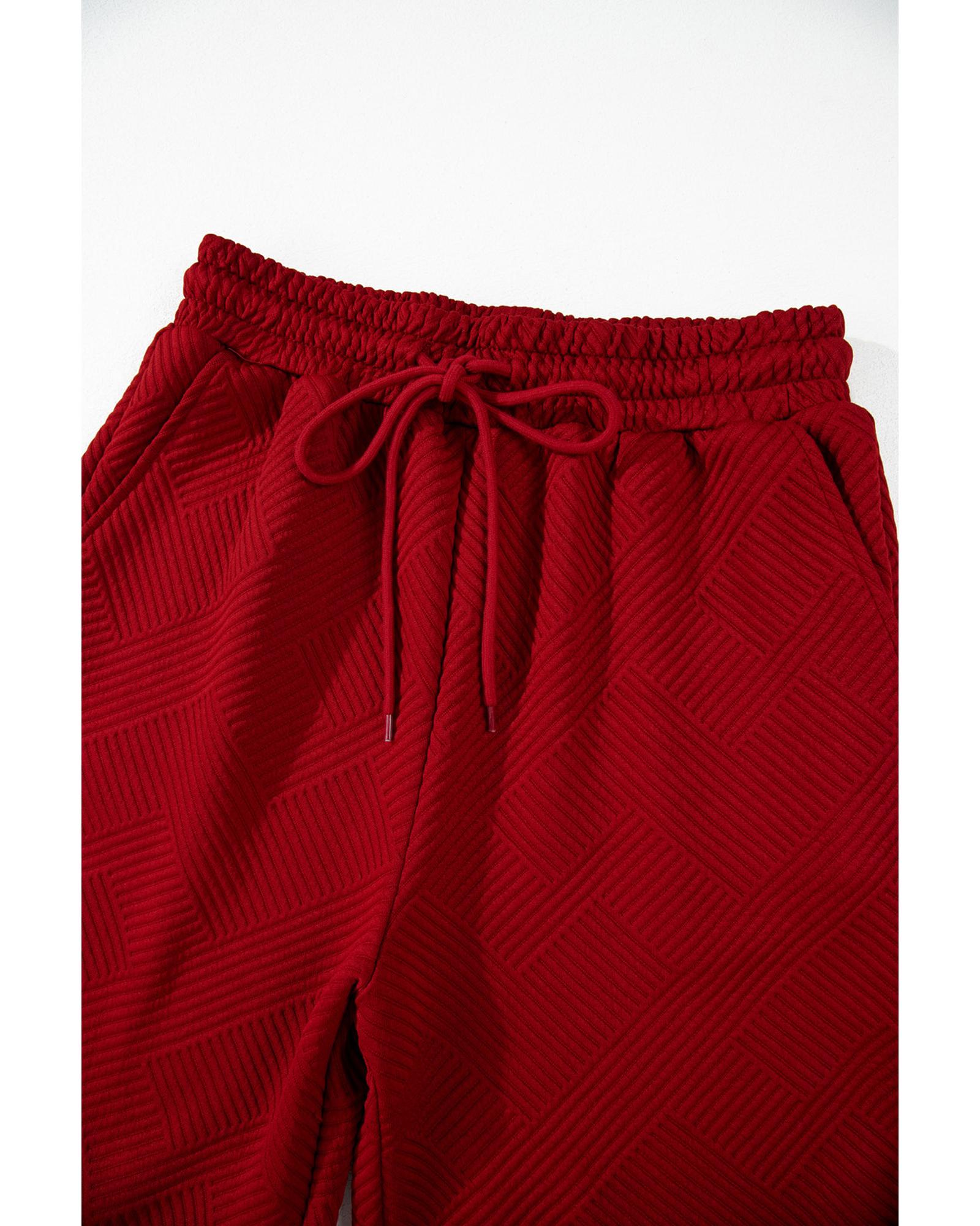 This set offers a comfortable and stylish casual look, perfect for lounging or running errands. The textured fabric adds a fashionable touch, while the loose fit ensures all-day comfort. The drawstring waist allows for a customizable fit, making it suitable for various body types.