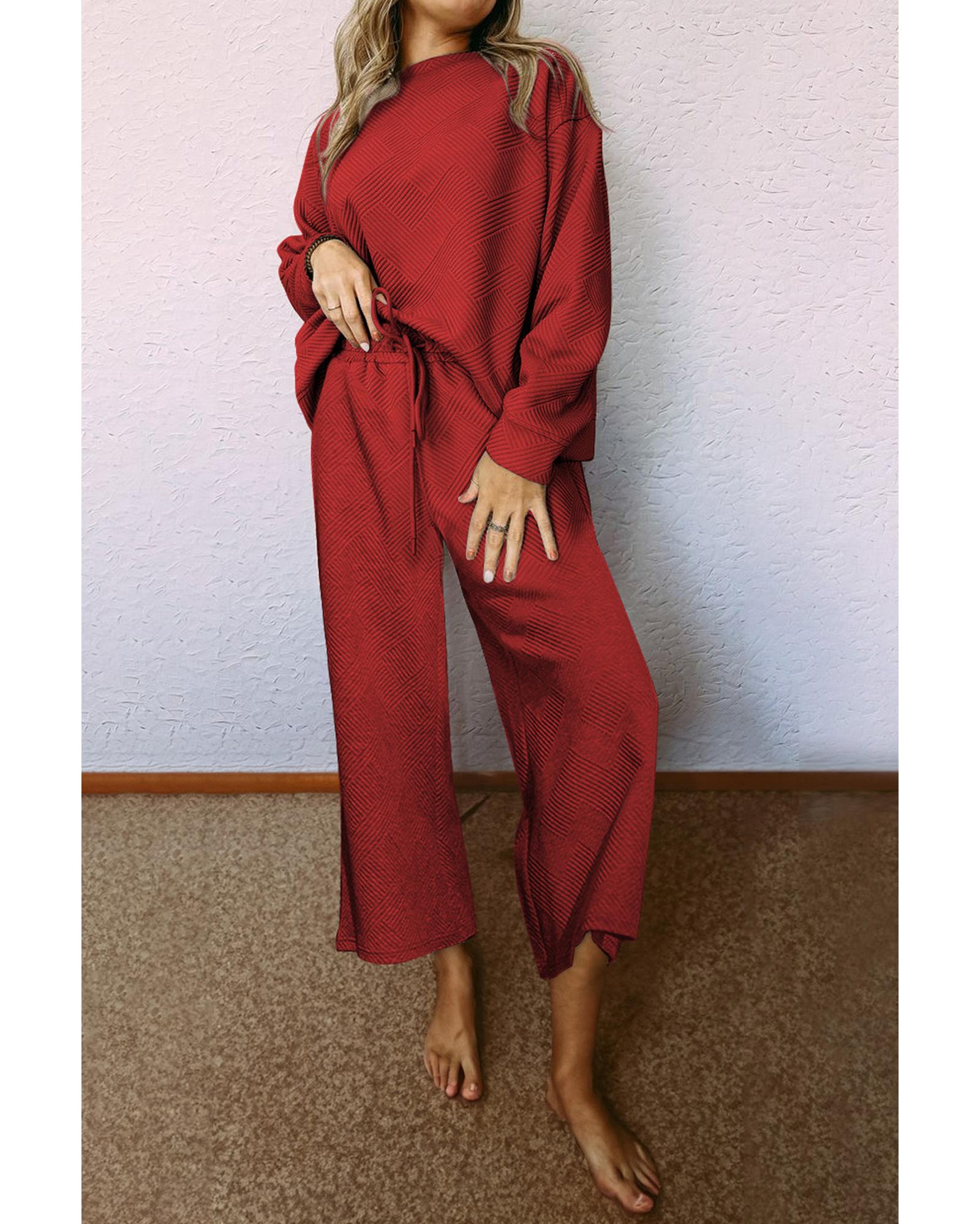 Red Dahlia Ultra Loose Textured 2pcs Slouchy Outfit – S