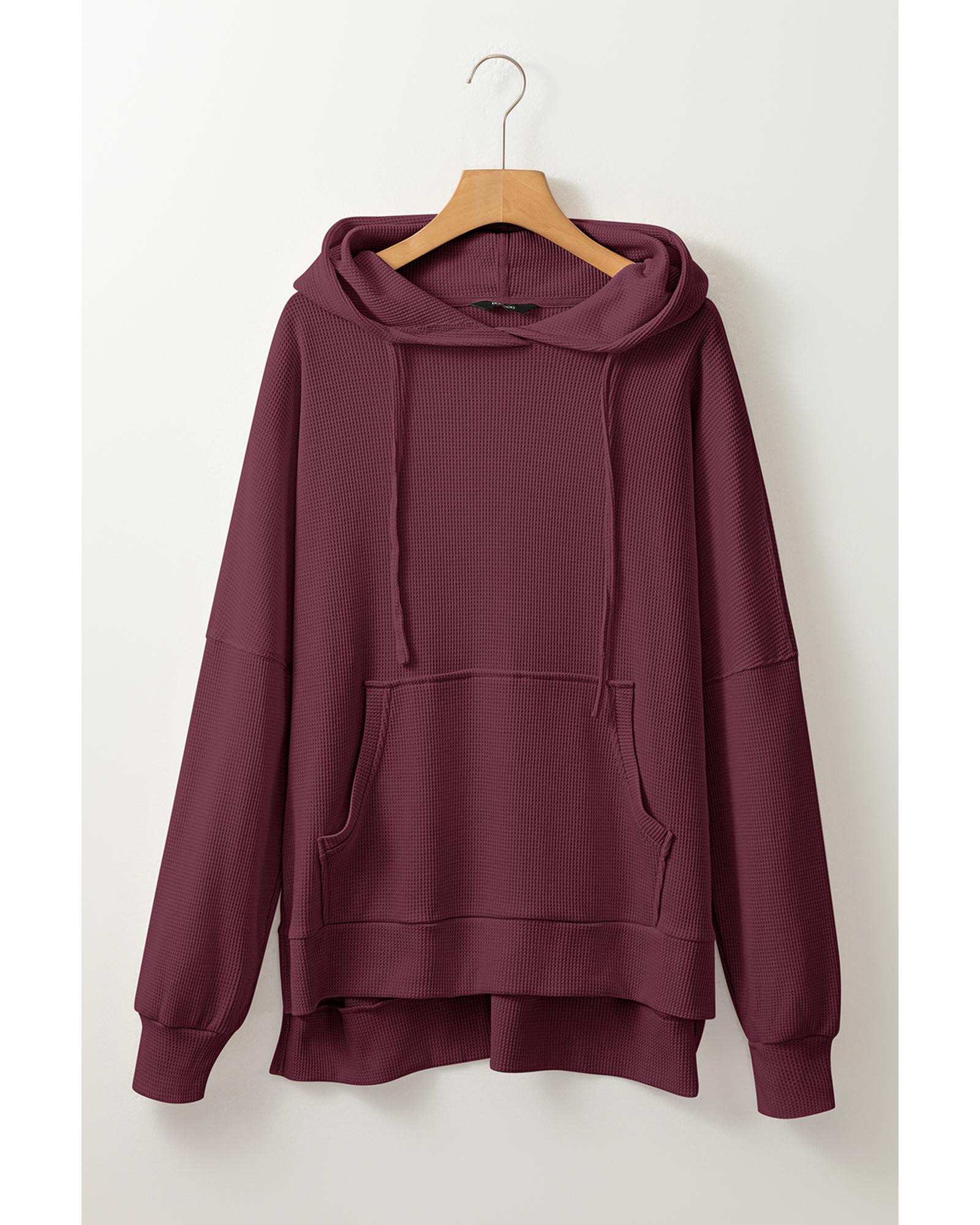Red Dahlia Waffle Knit Fleece Lined High Low Oversized Hoodie – S