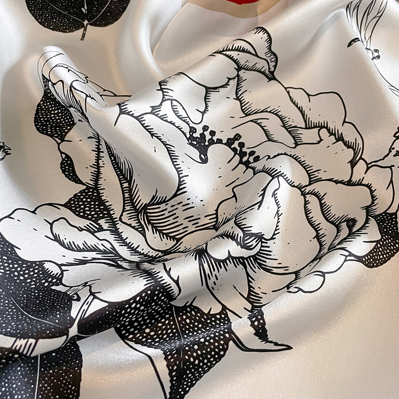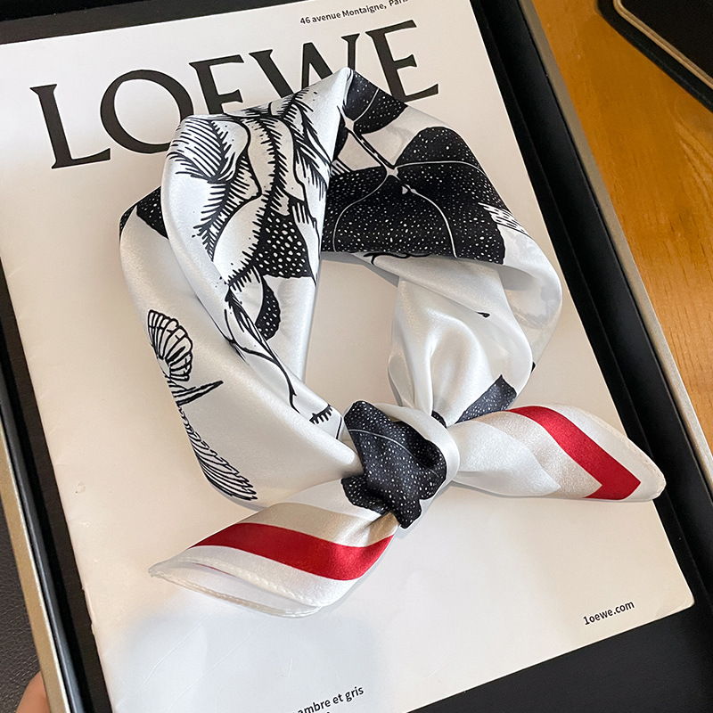 This elegant square silk scarf is crafted from 100% mulberry silk, offering a luxurious and soft feel. Featuring a delicate floral print, it adds a sophisticated touch to any outfit. Its versatile size makes it suitable for various styling options, including as a neck scarf, headscarf, or accessory for a bag. The lightweight and breathable fabric ensures comfort for year-round wear, while the smooth texture provides a gentle touch against the skin.