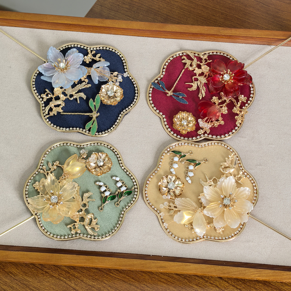 - Features: Inspired by traditional Chinese aesthetics, the fan showcases floral embroidery, faux pearls, and a delicate dragonfly embellishment on a rich fabric background. It is designed as a stylish and decorative accessory for various artistic and photographic applications.