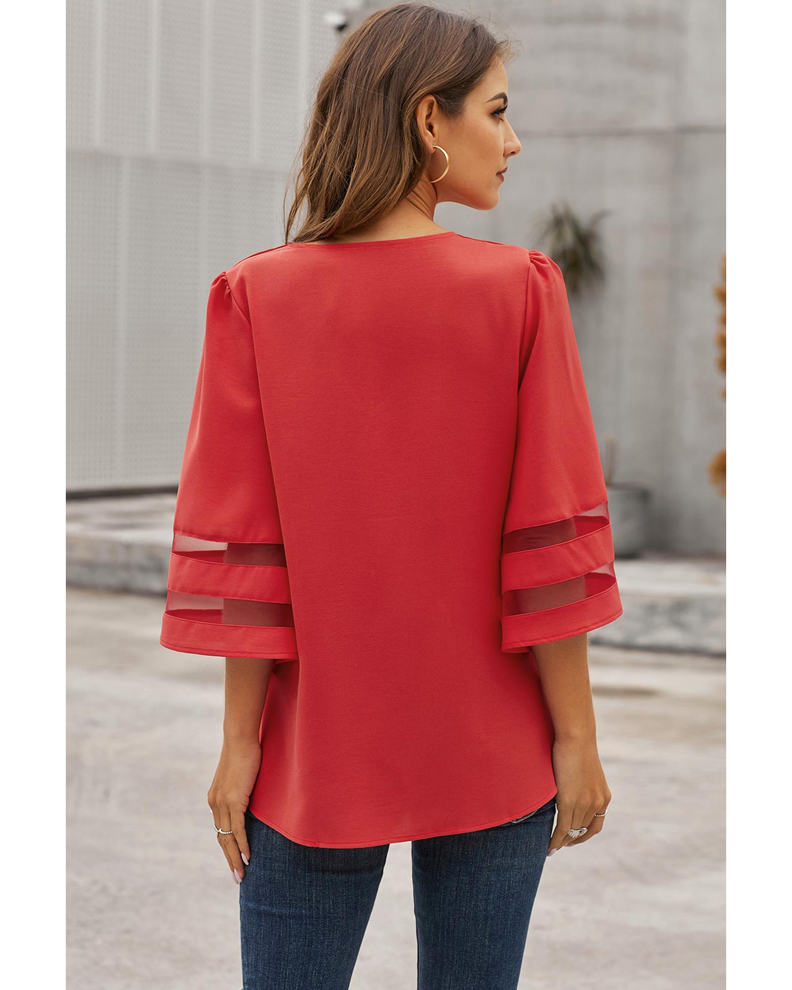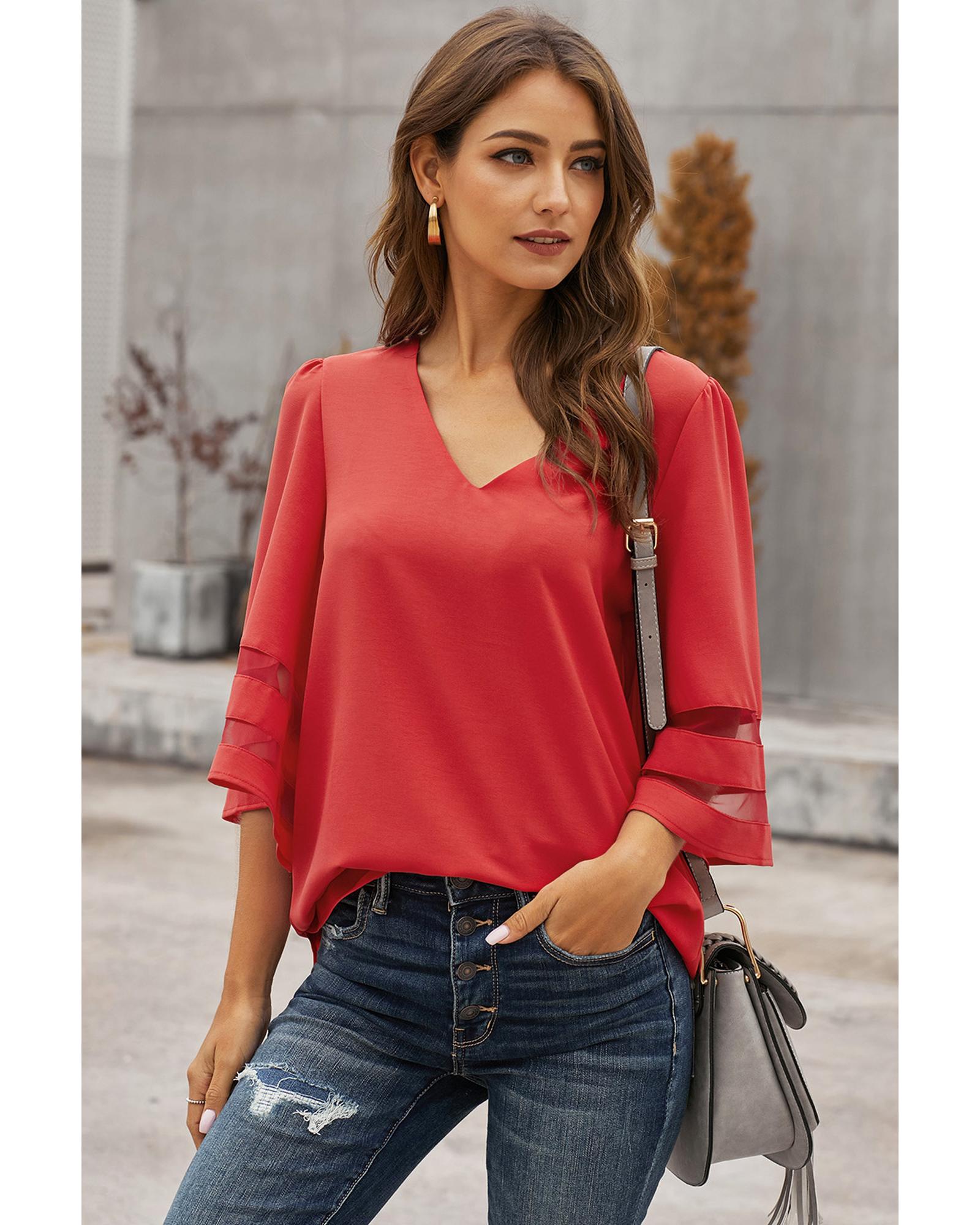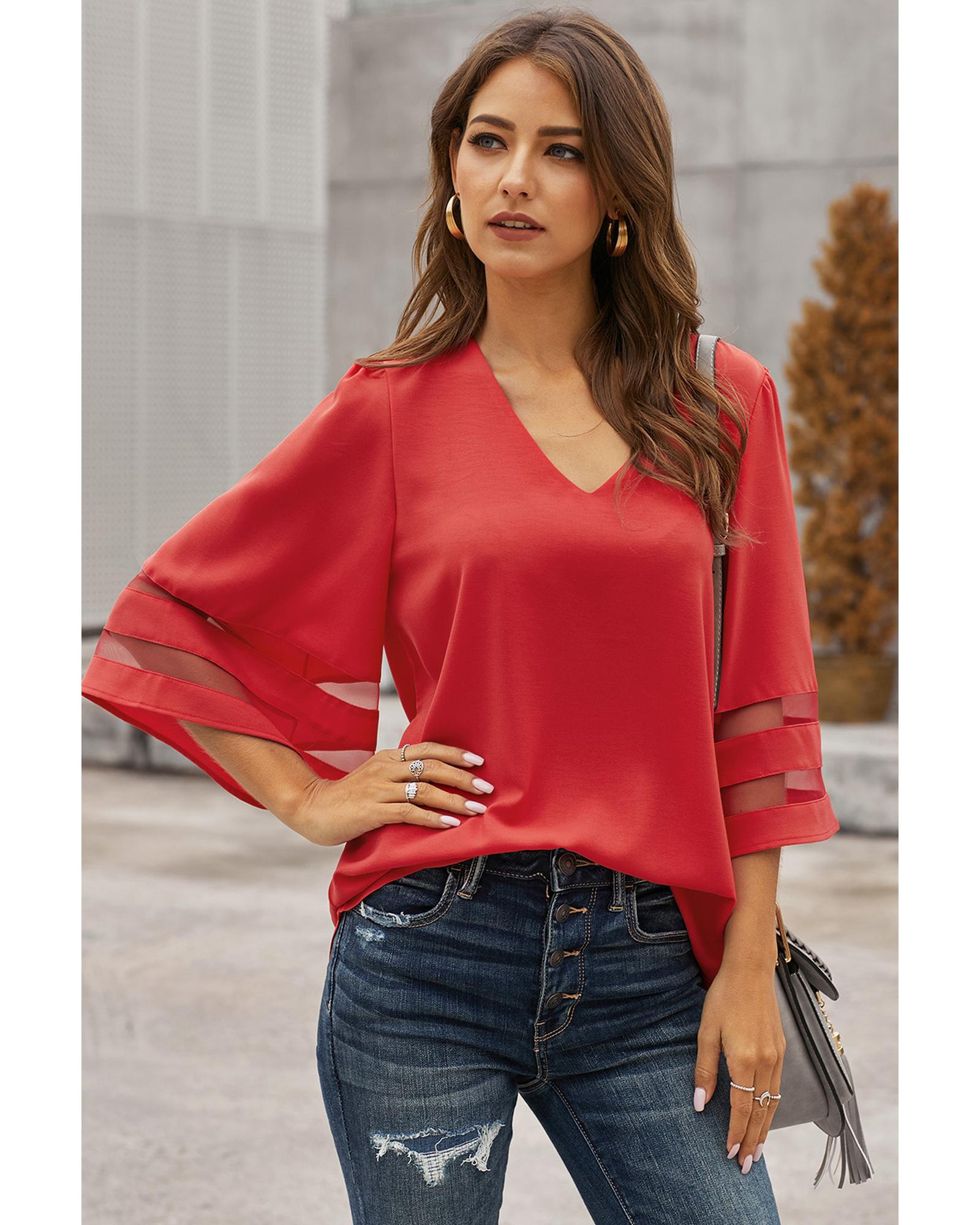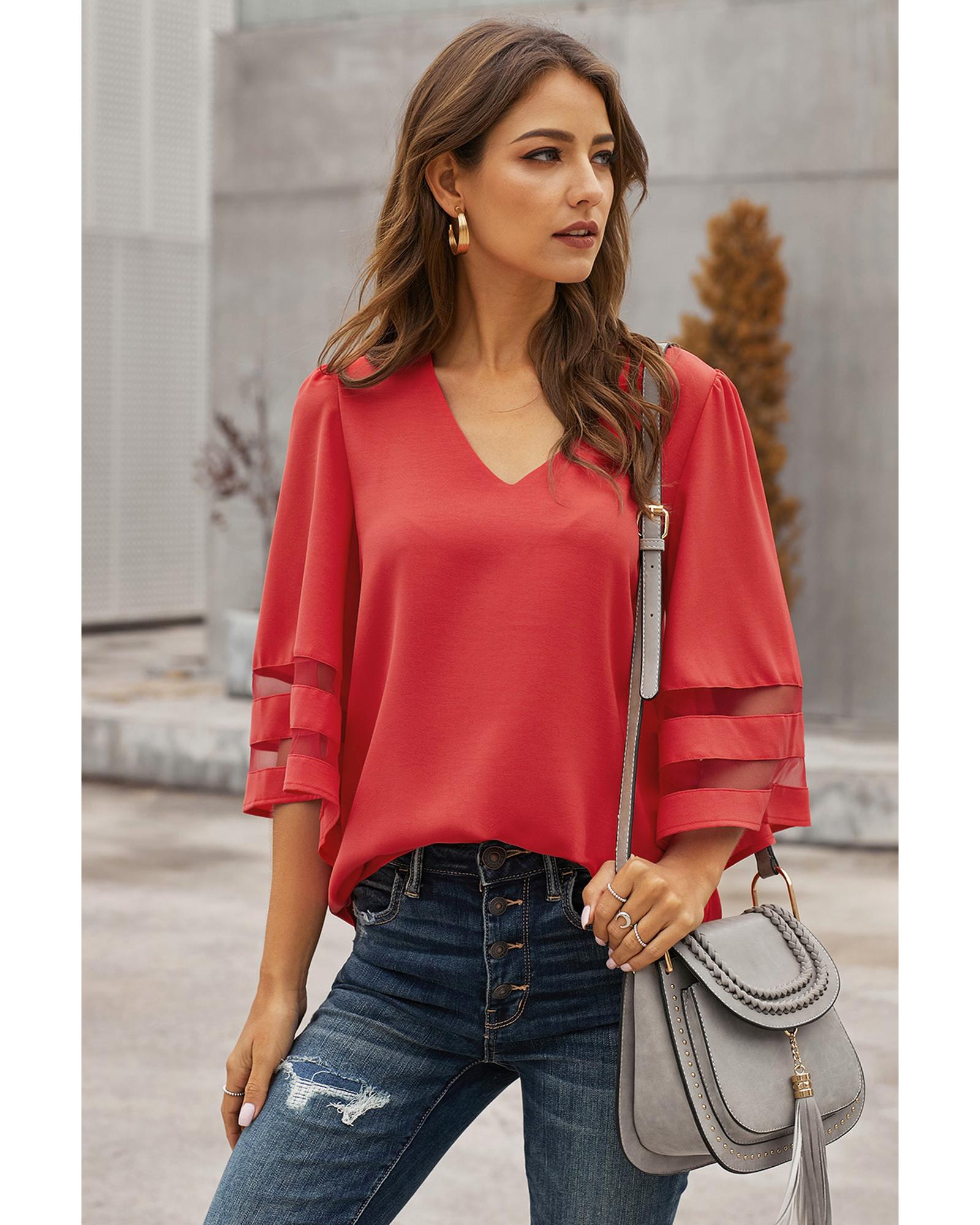 This flare sleeve V neck loose blouse offers a trendy and versatile design suitable for various occasions. Crafted with high-quality materials, it provides a comfortable and luxurious feel. The blouse features a relaxed fit with flare sleeves and a V neckline, making it a stylish addition to any wardrobe.