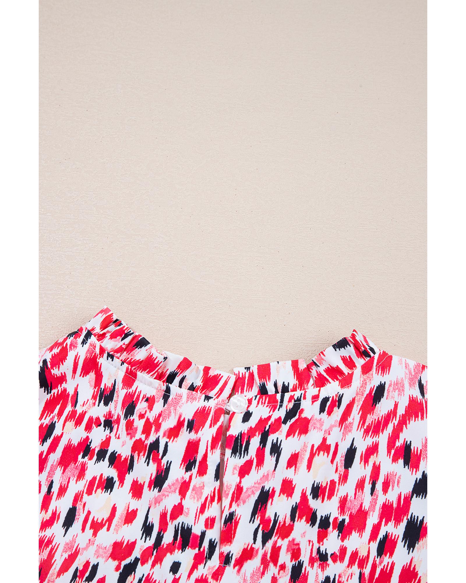 Red Floral Mixed Print Ruffle Cap Sleeve Blouse – M