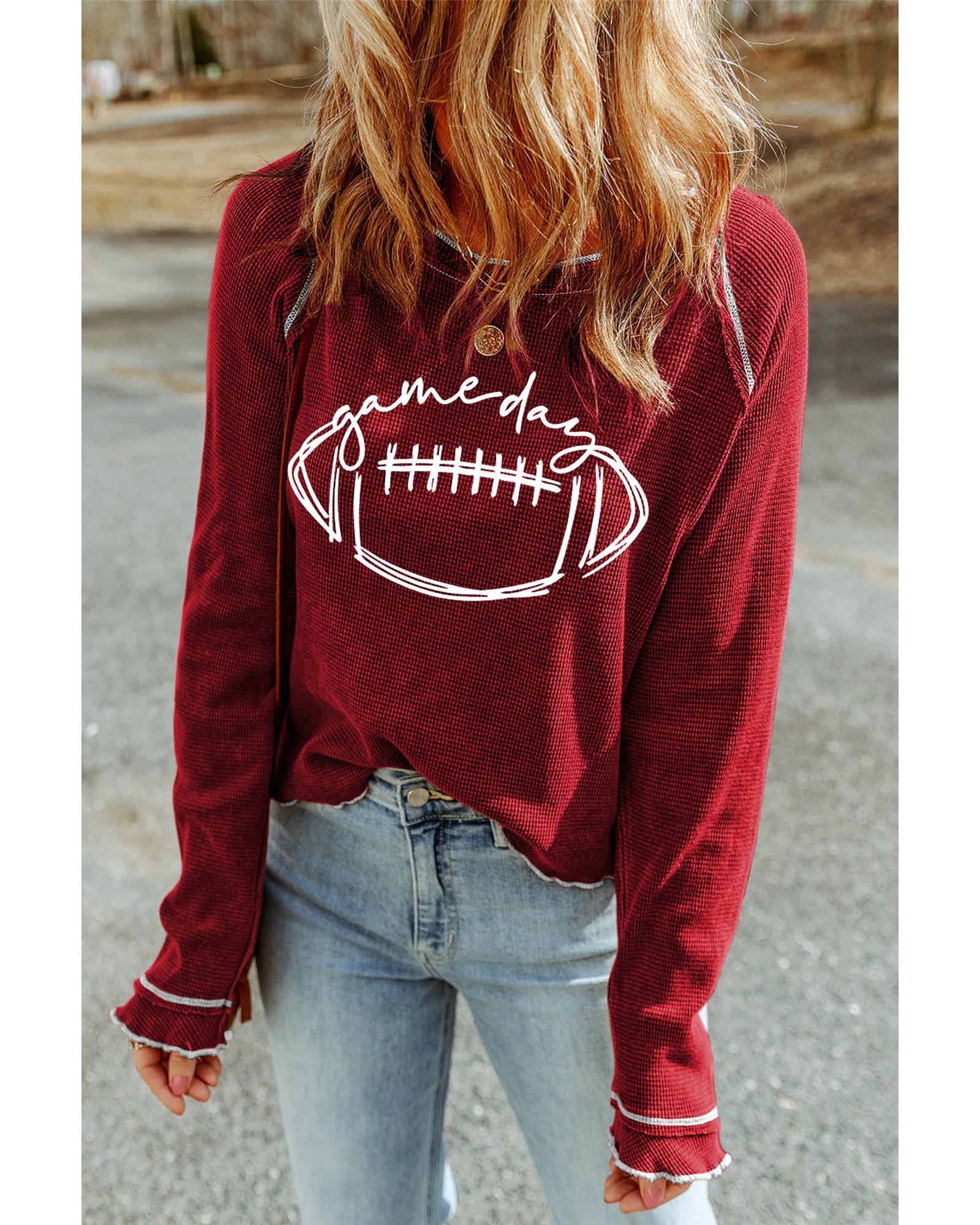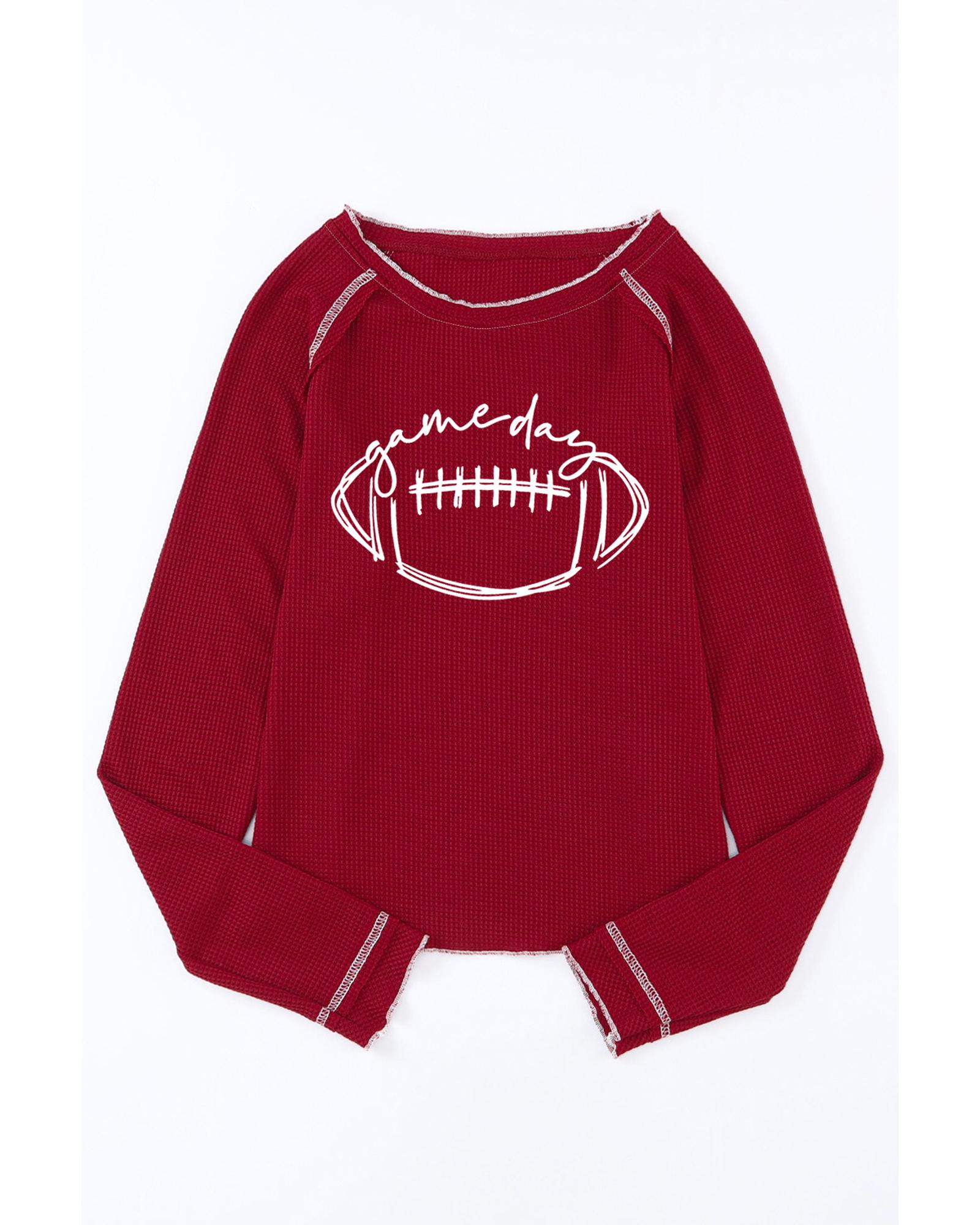 Red Game Day Rugby Football Graphic Thermal Knit Top – S