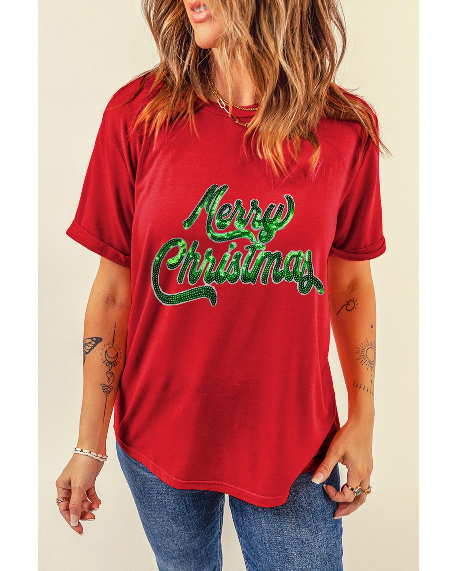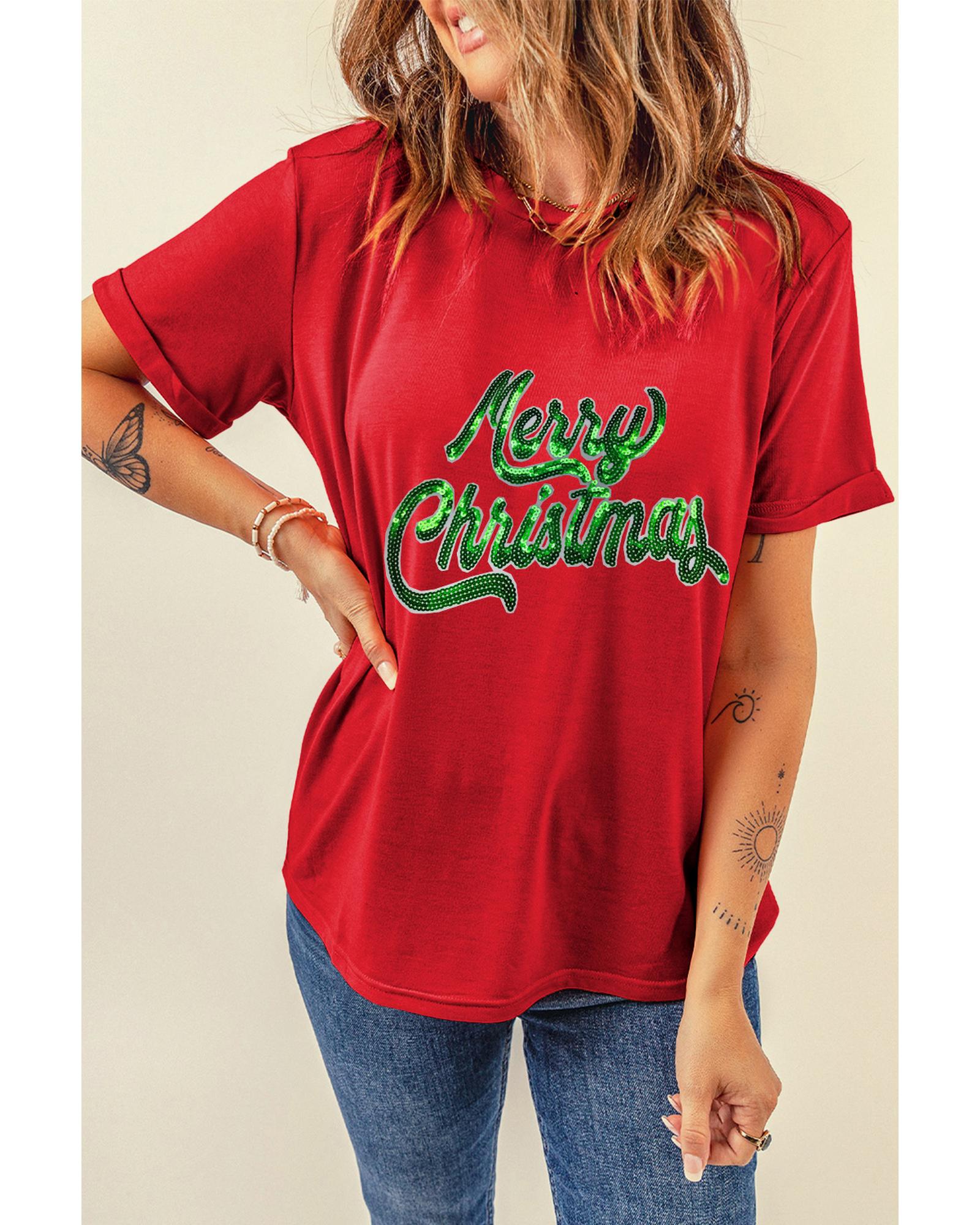 Red Merry Christmas Graphic Crewneck T Shirt – S
