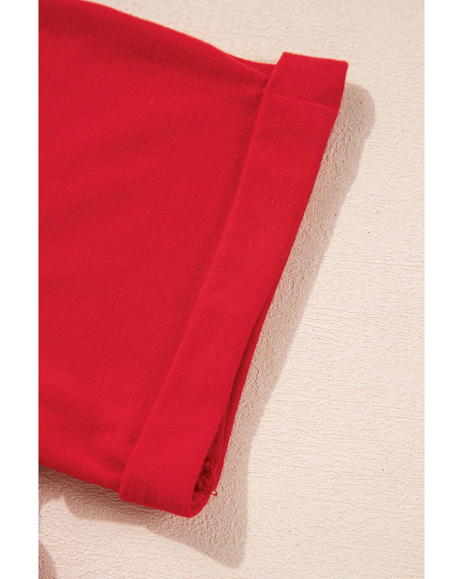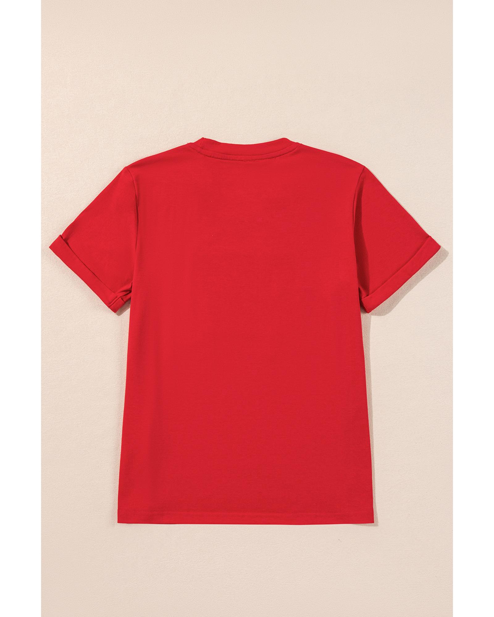 This festive crewneck T-shirt features a cheerful Christmas graphic design, making it perfect for holiday celebrations. Crafted from soft and comfortable fabric, it offers a cozy fit suitable for everyday wear during the holiday season.