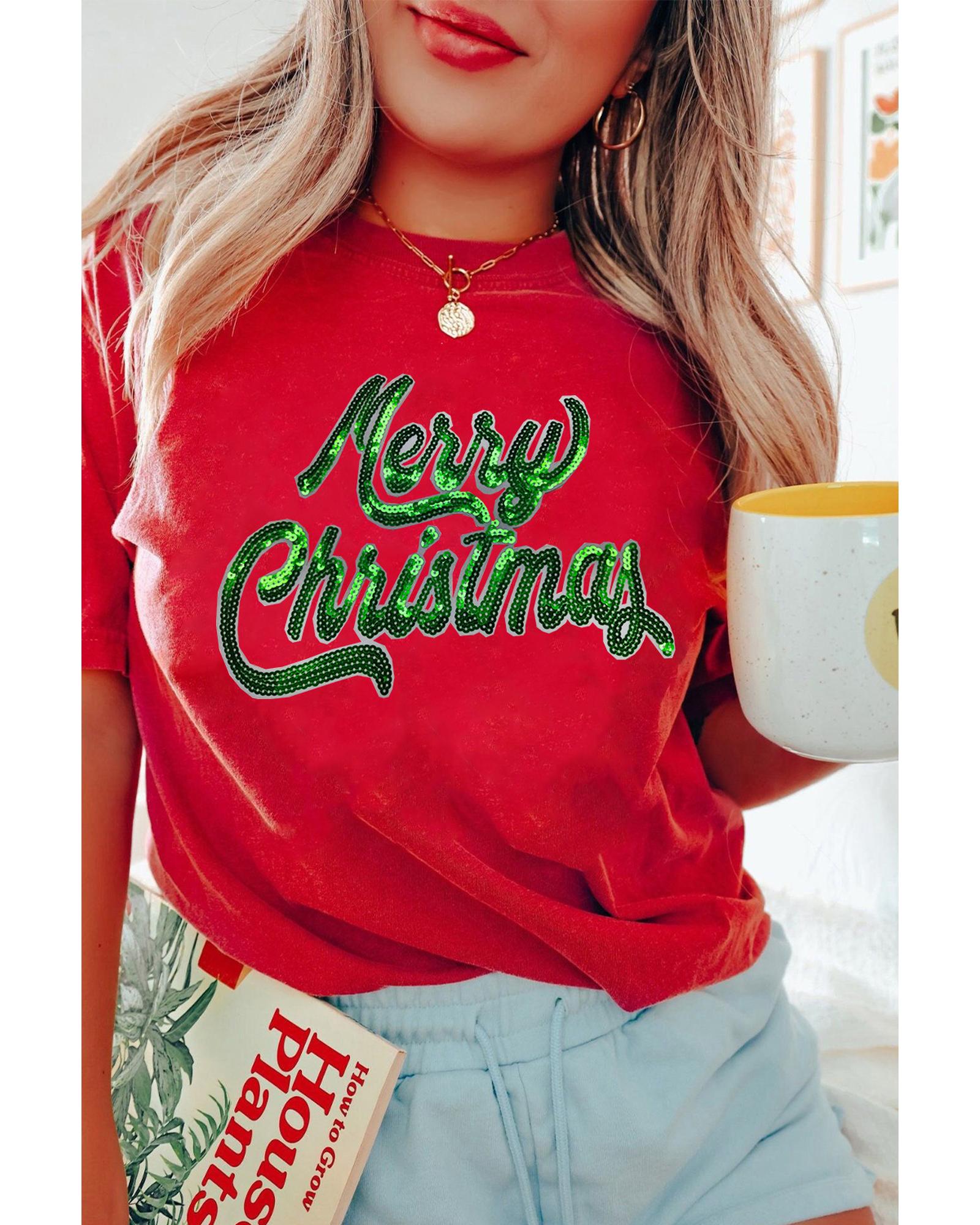 Red Merry Christmas Graphic Crewneck T Shirt – XL