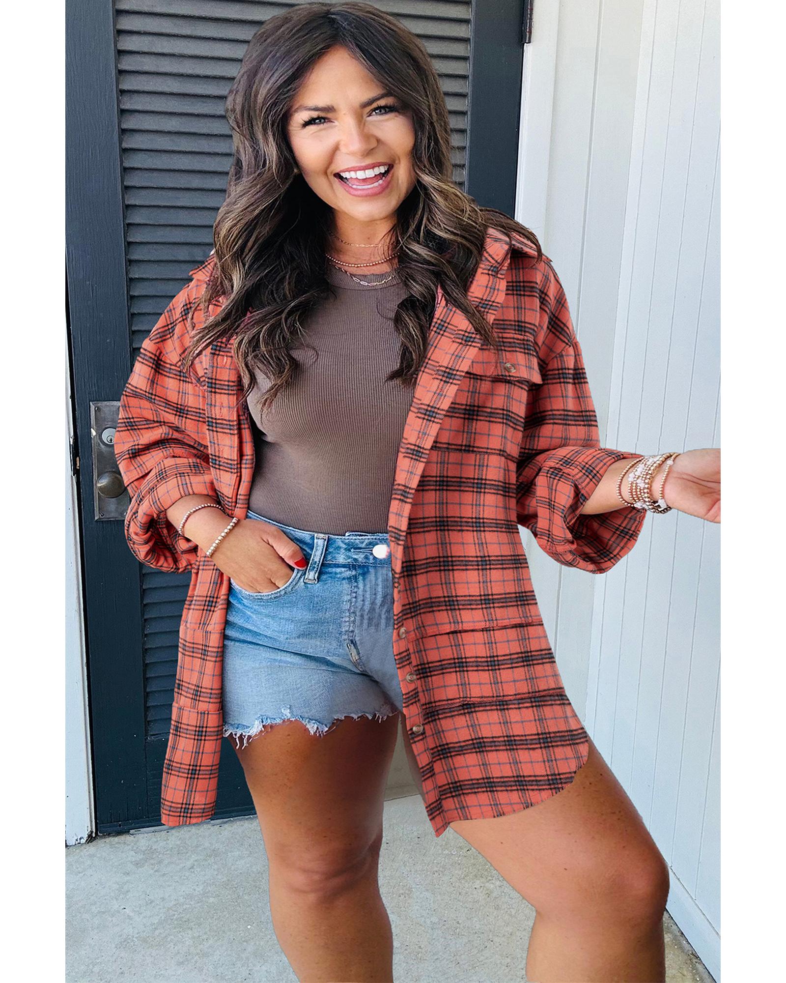 This long sleeve shirt features a classic plaid pattern with a relaxed fit and stylish distressed hem. Its oversized design includes a round hemline and side slits, making it a versatile addition to casual outfits. Crafted from 100% cotton, it offers comfort and breathability.
