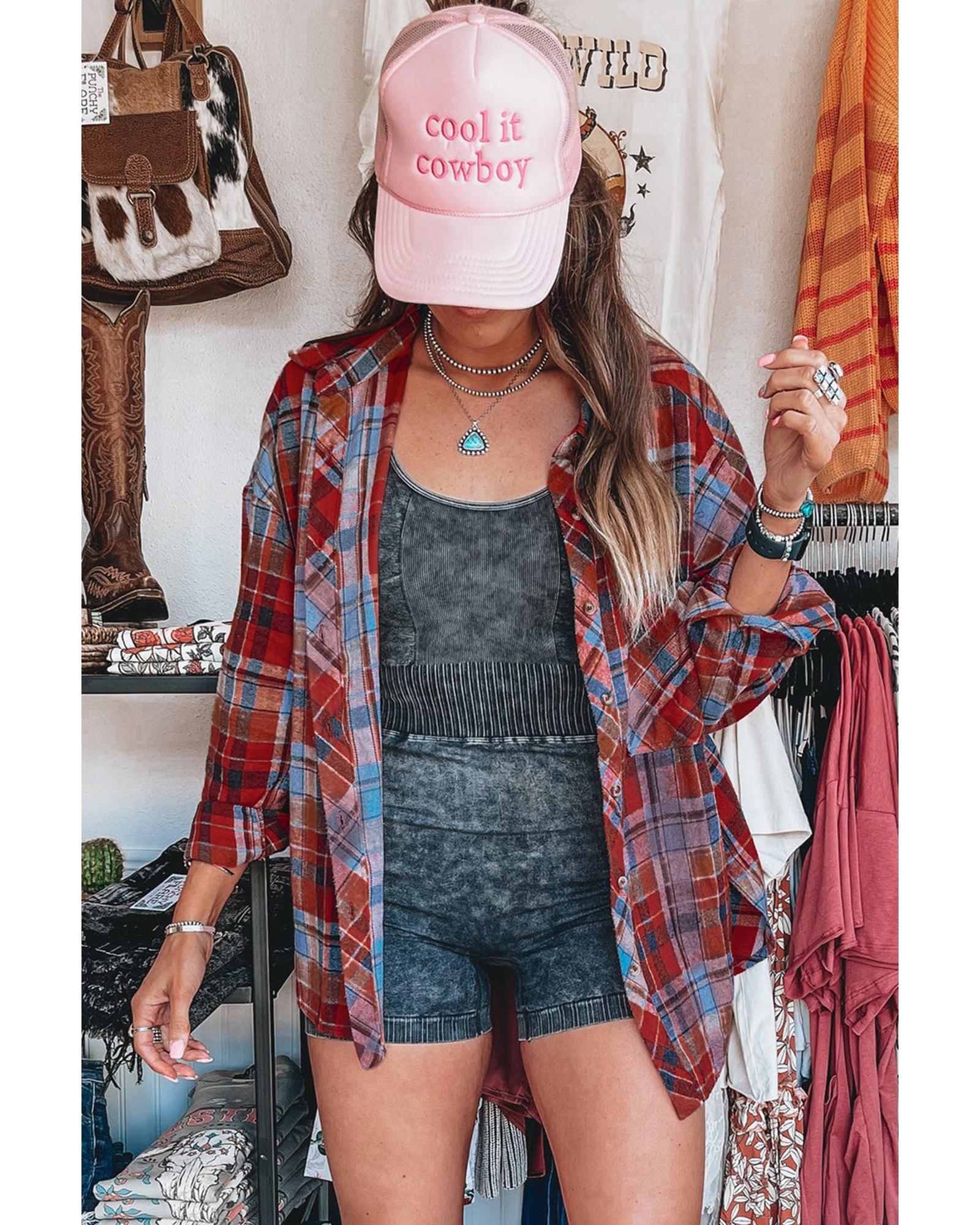 This vintage-style shirt features a classic plaid print with a touch of retro charm. Designed with a loose fit, it offers comfort and versatility, making it suitable for various styling options. The shirt is a unisex piece that can enhance any wardrobe with its timeless pattern and relaxed silhouette.
