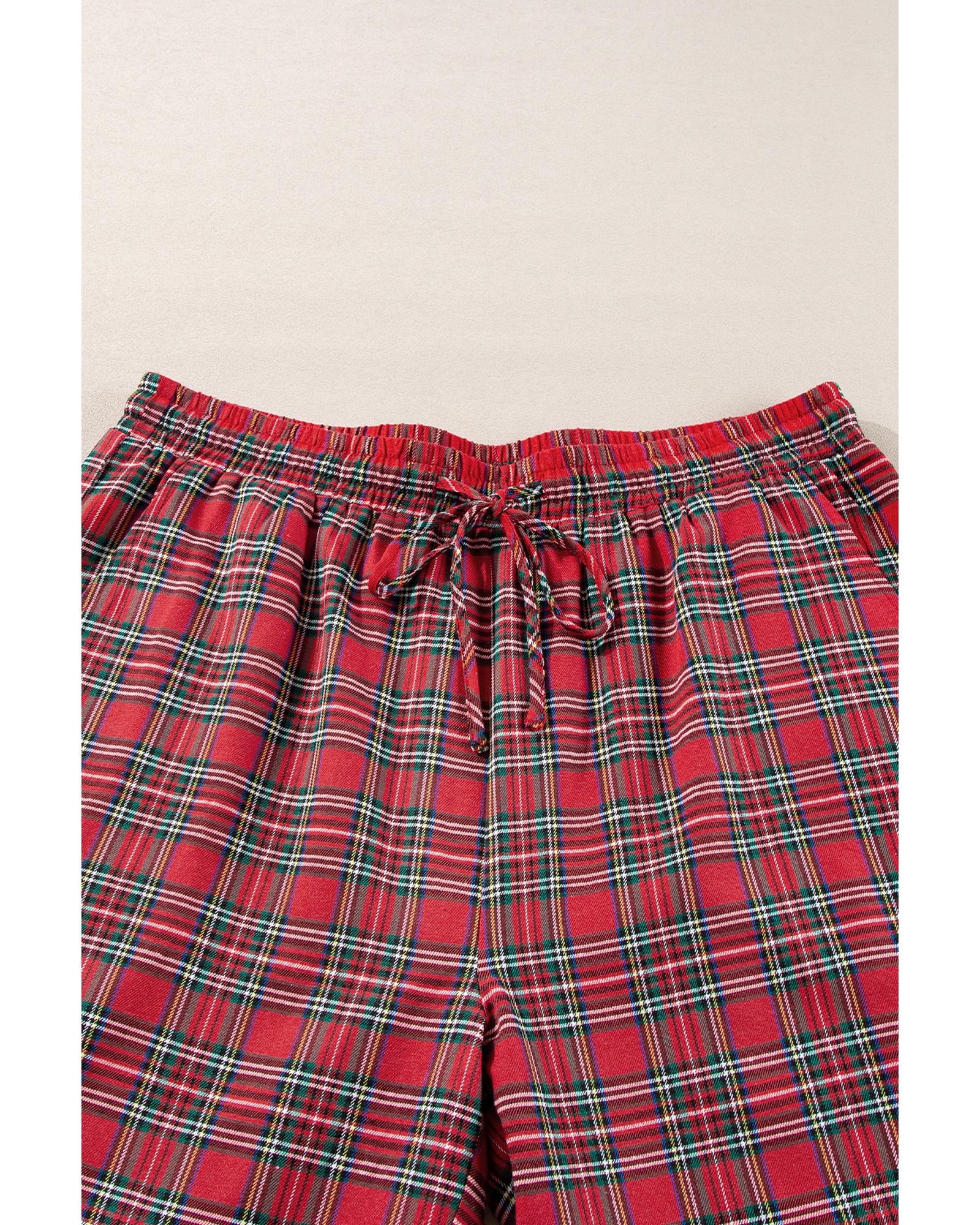 Red Plaid Printed Shirt and Pants Plus Size Lounge Set – 2X