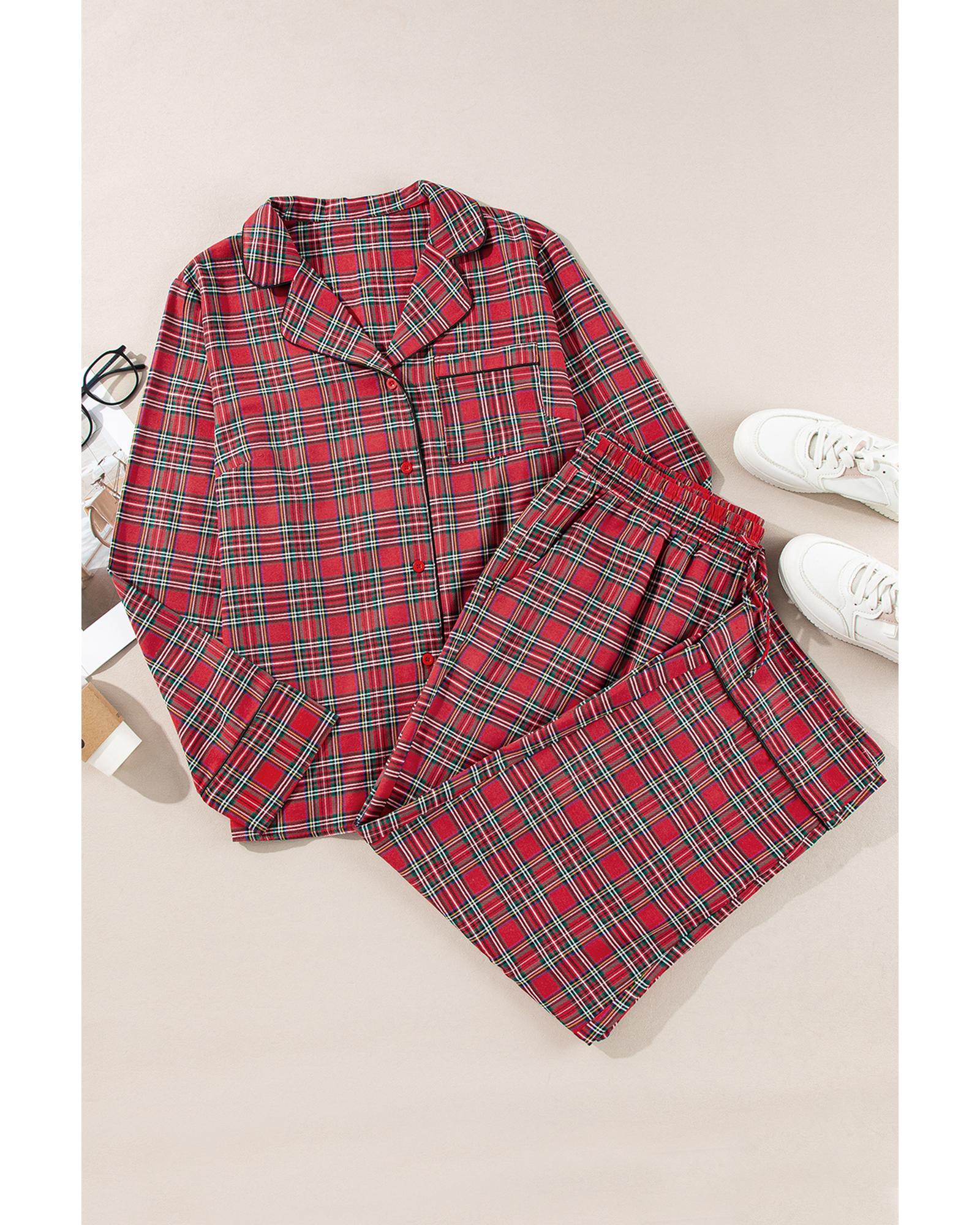 Red Plaid Printed Shirt and Pants Plus Size Lounge Set – 3X