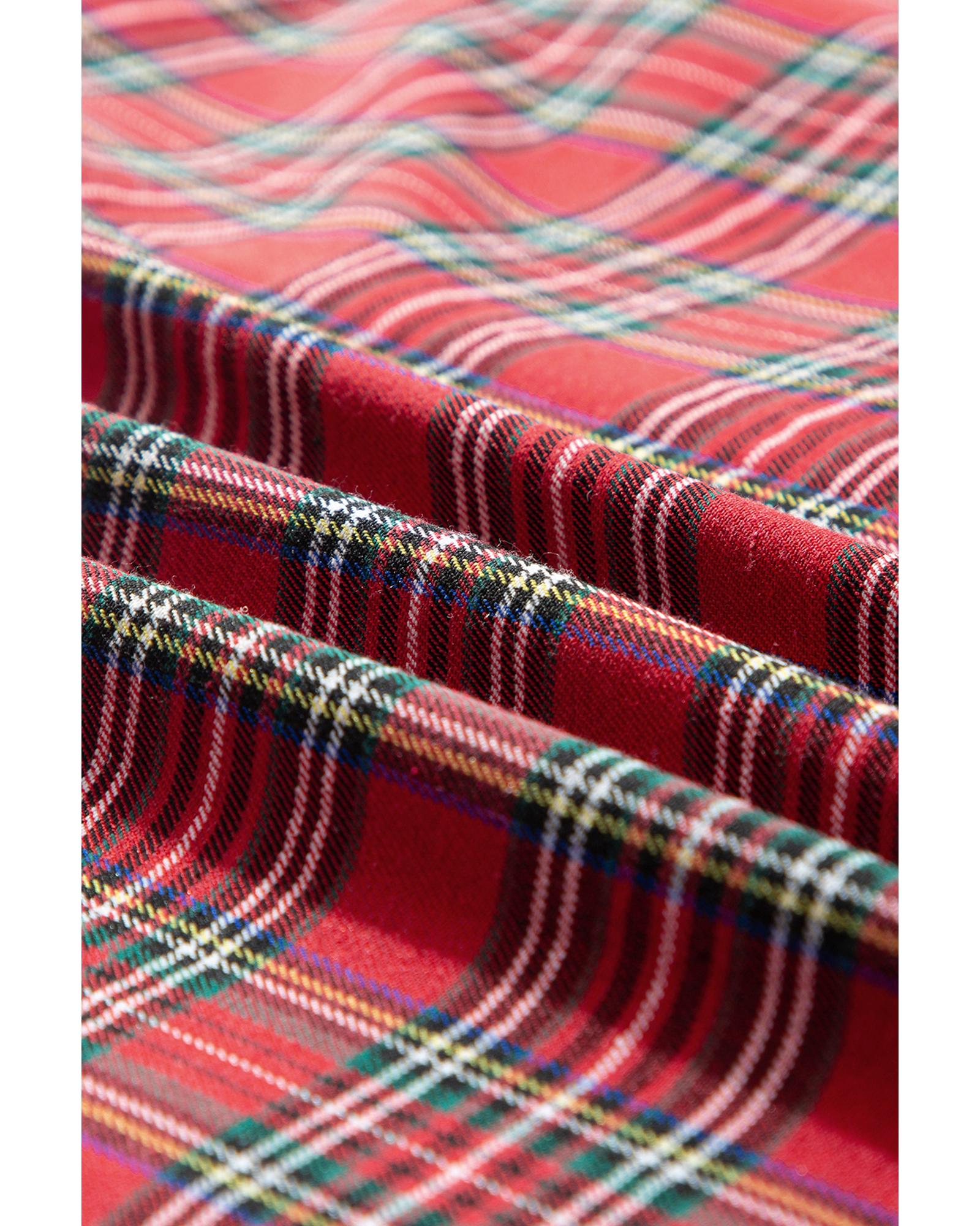 This plus size lounge set features a classic red plaid print, designed for a comfortable and stylish fit. The set includes a buttoned shirt and knotted waist pants, making it suitable for daily wear and relaxed occasions. Crafted from a soft blend of polyester and cotton, it offers both comfort and durability.