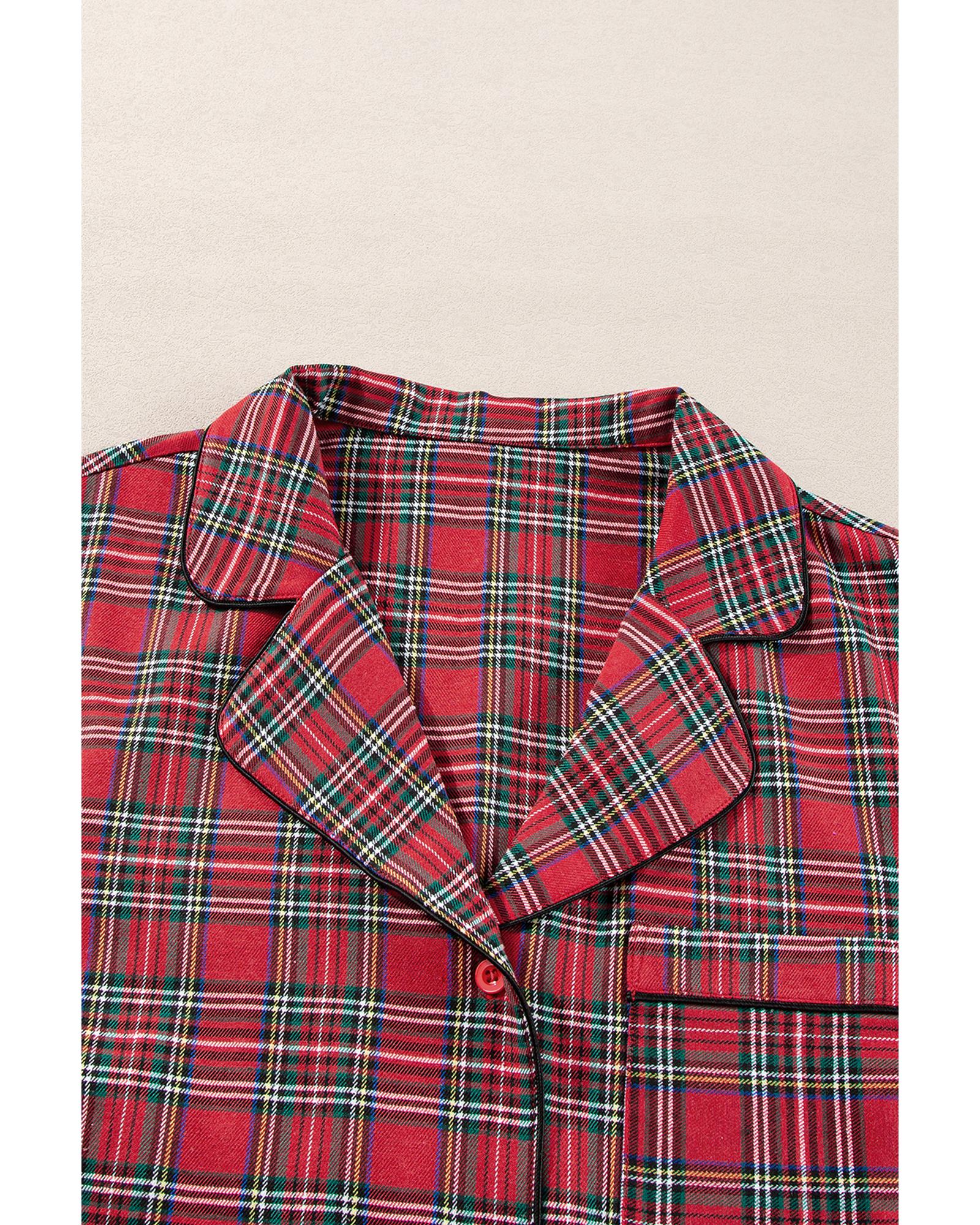 Red Plaid Printed Shirt and Pants Plus Size Lounge Set – 4X