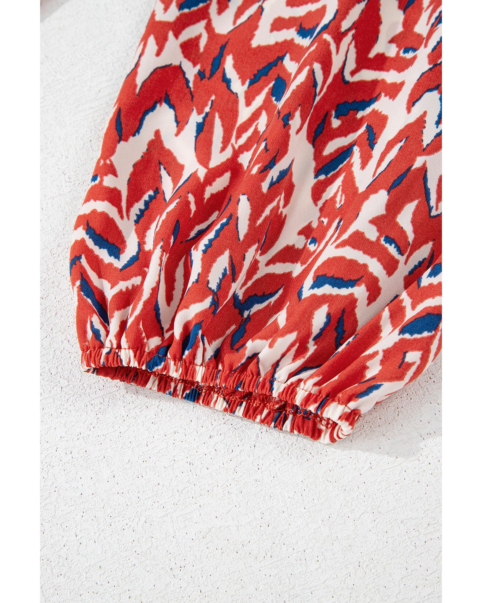 Red Plus Size Abstract Print Notch V Neck High Waist Maxi Dress – 4X
