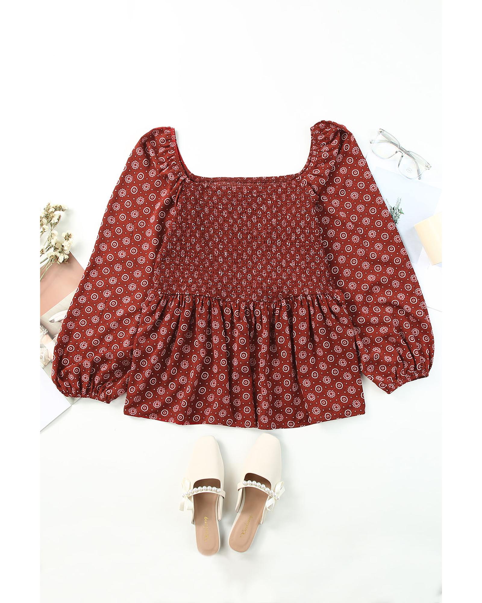 Red Plus Size Square Neck Printed Peplum Top – 2X