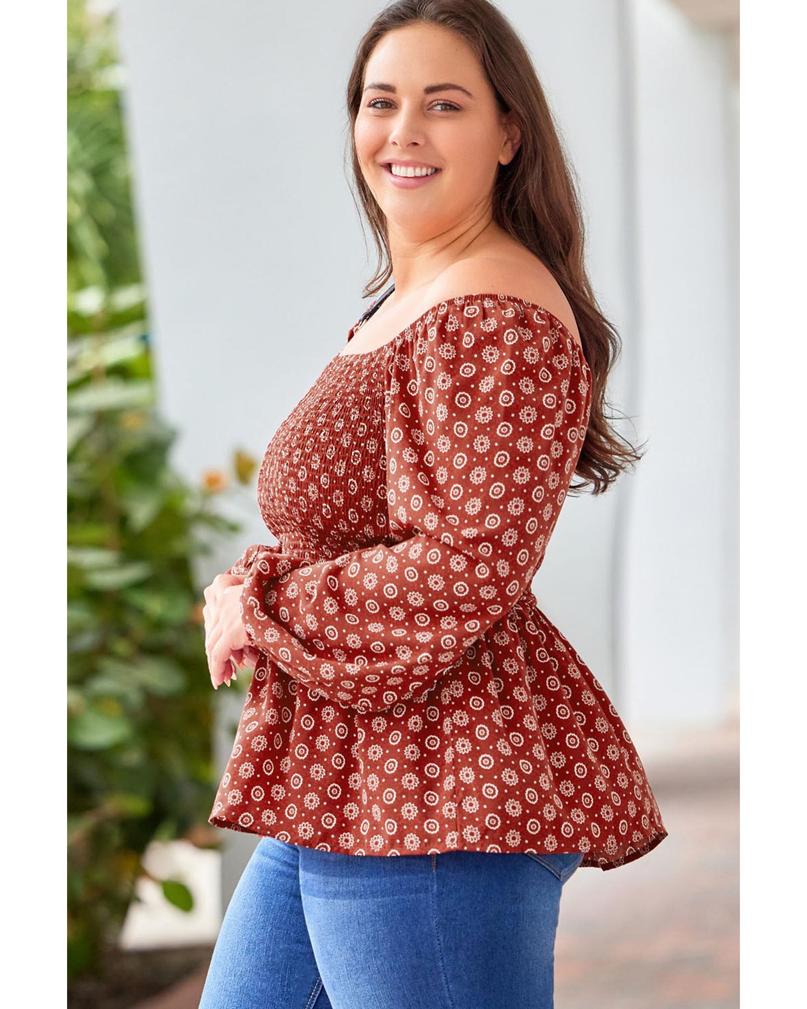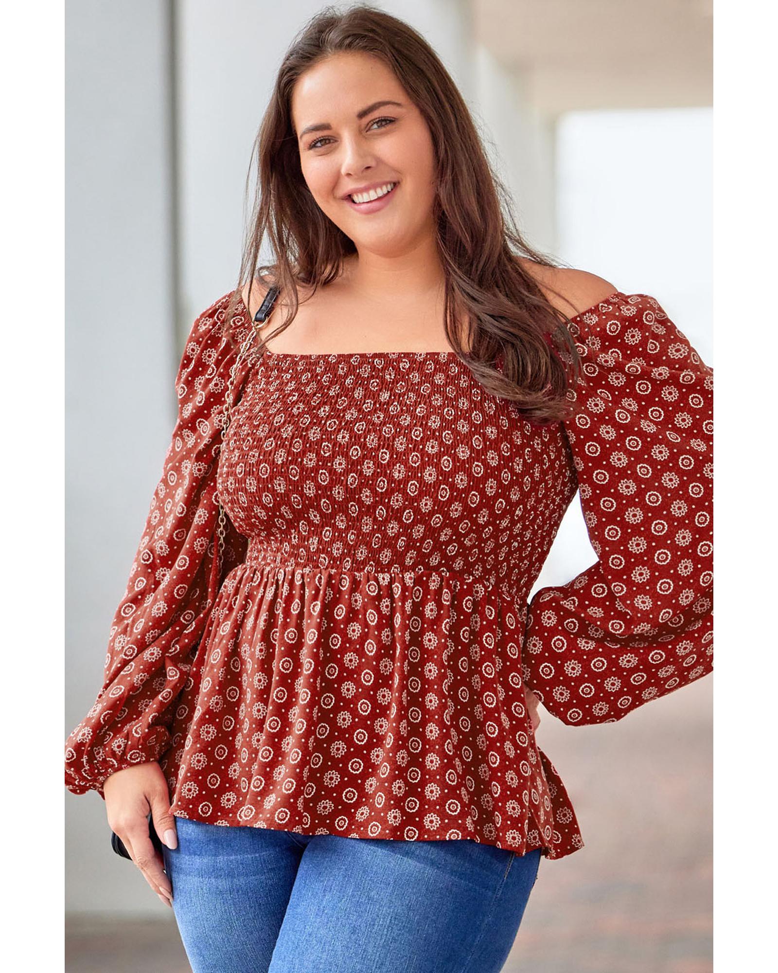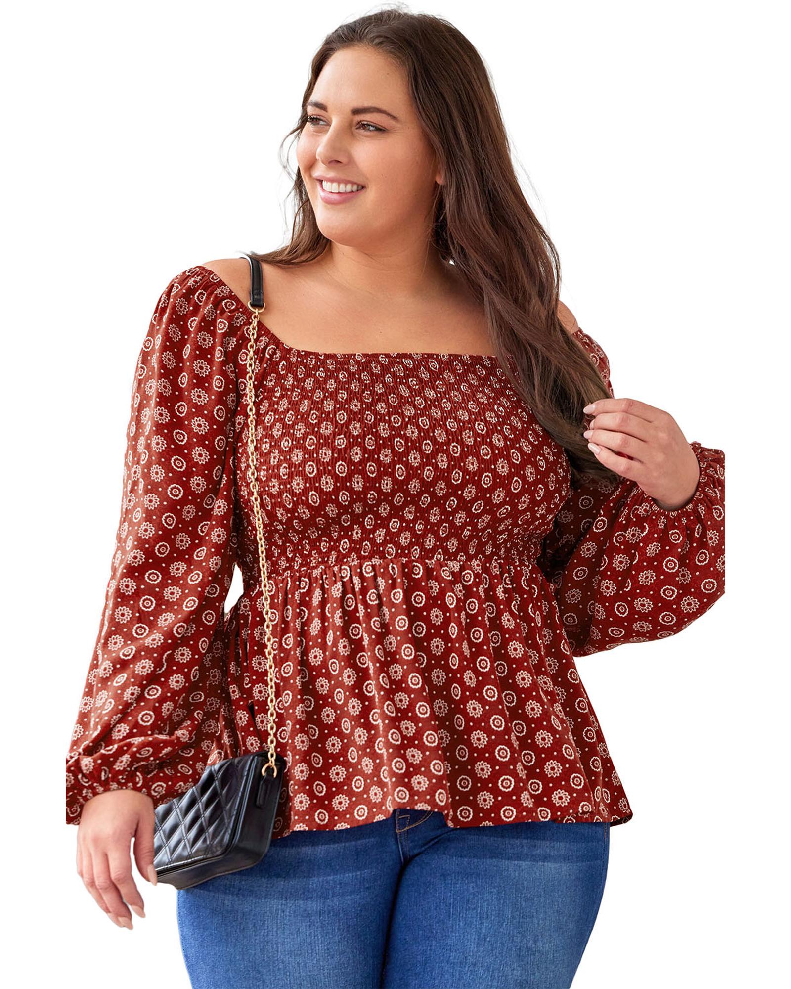 - 1 x Plus Size Square Neck Printed Peplum Top