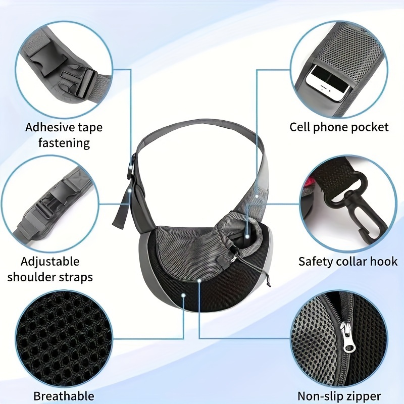 This portable pet carrier is designed for cats and puppies, offering a comfortable and secure environment during travel or outings. Made from durable Oxford fabric with a breathable mesh design, it ensures good airflow and pet comfort. The adjustable strap allows for a customized fit, and the secure closure keeps pets safe. Its lightweight construction makes it easy to carry, making it suitable for various activities such as vet visits, walks, or casual trips.