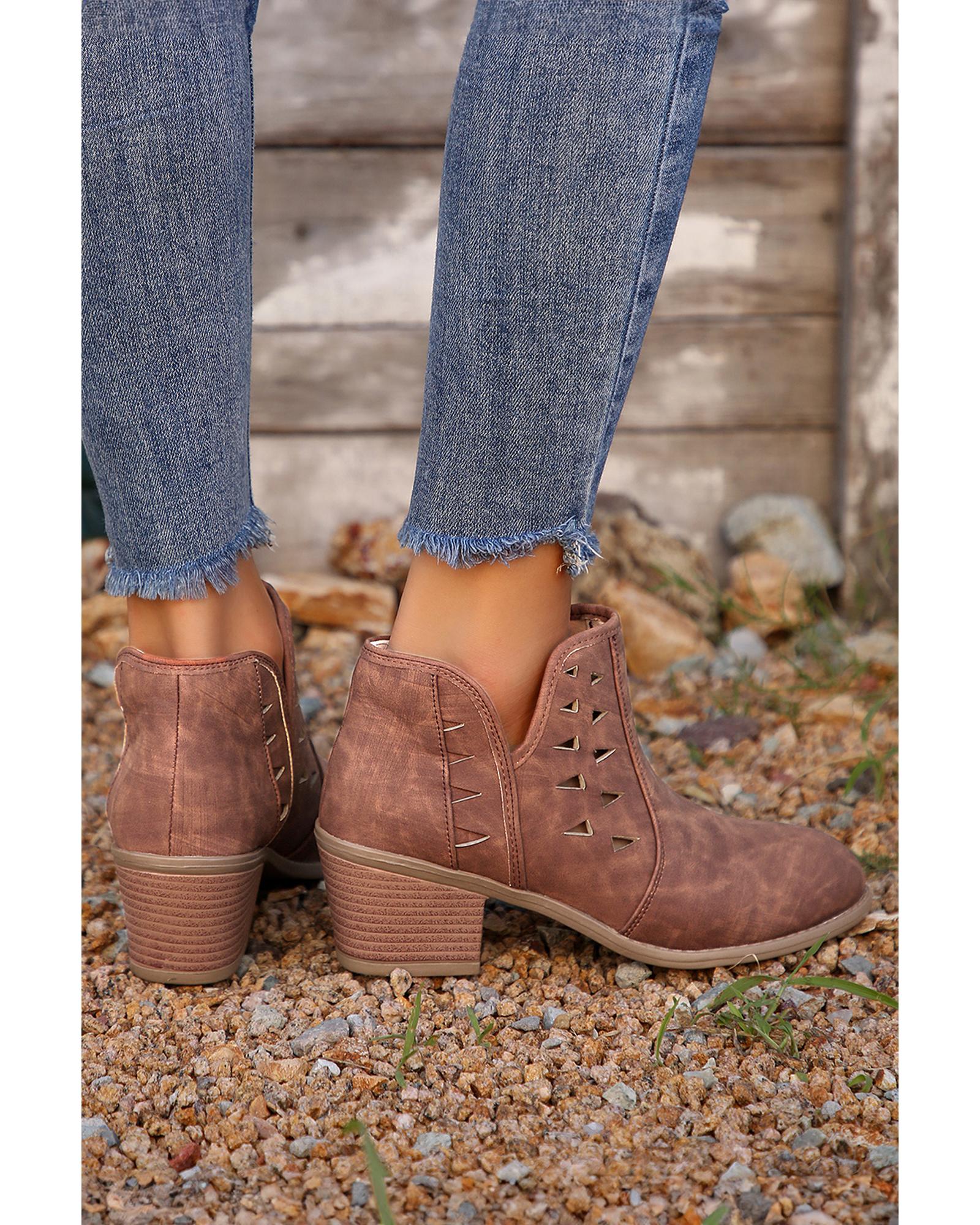 Red Sandalwood Cut Out Suede Pointed Toe Heeled Ankle Boots – 41 EU