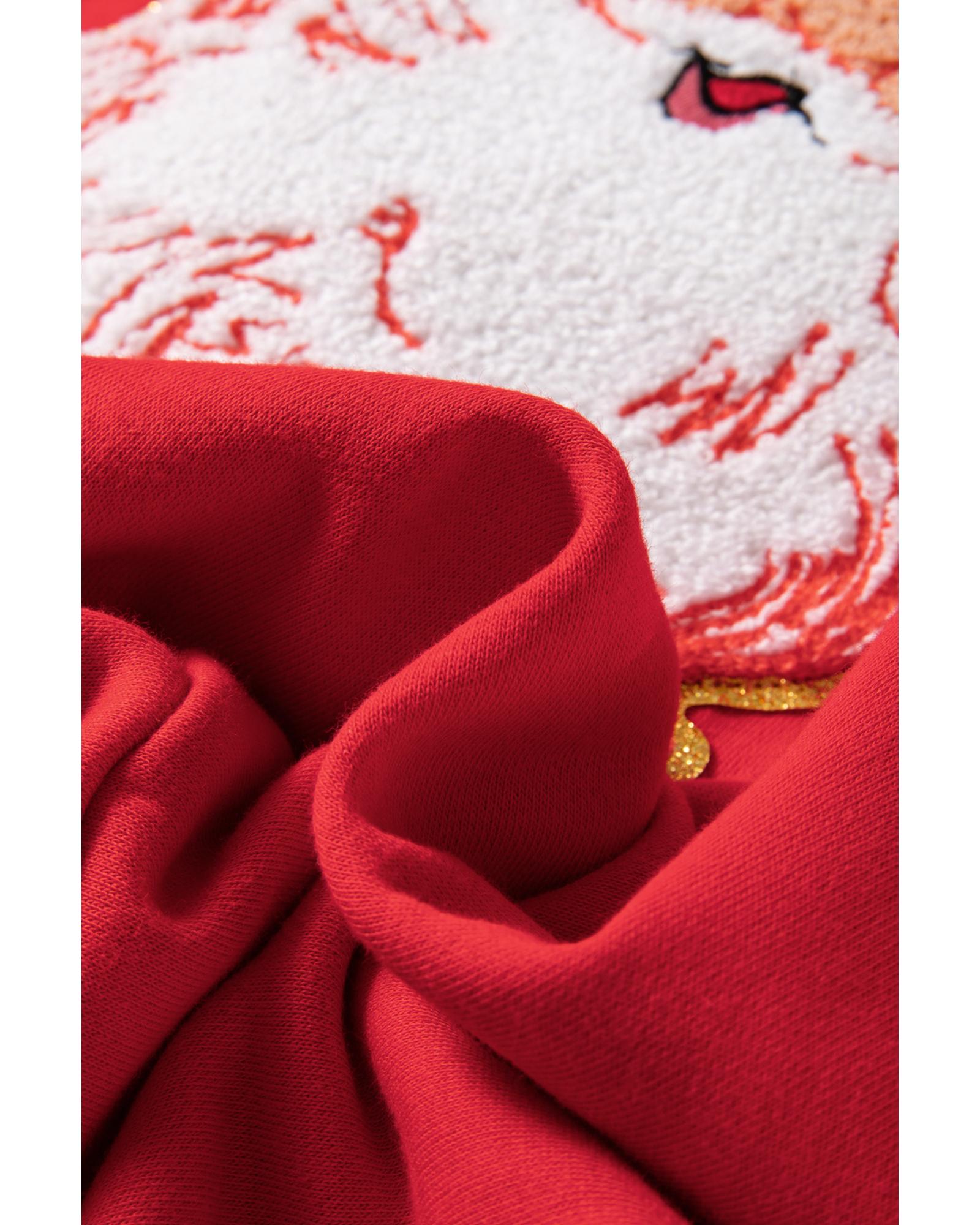 Red Santa Claus Graphic Crewneck Raglan Sleeve Christmas Sweatshirt – M