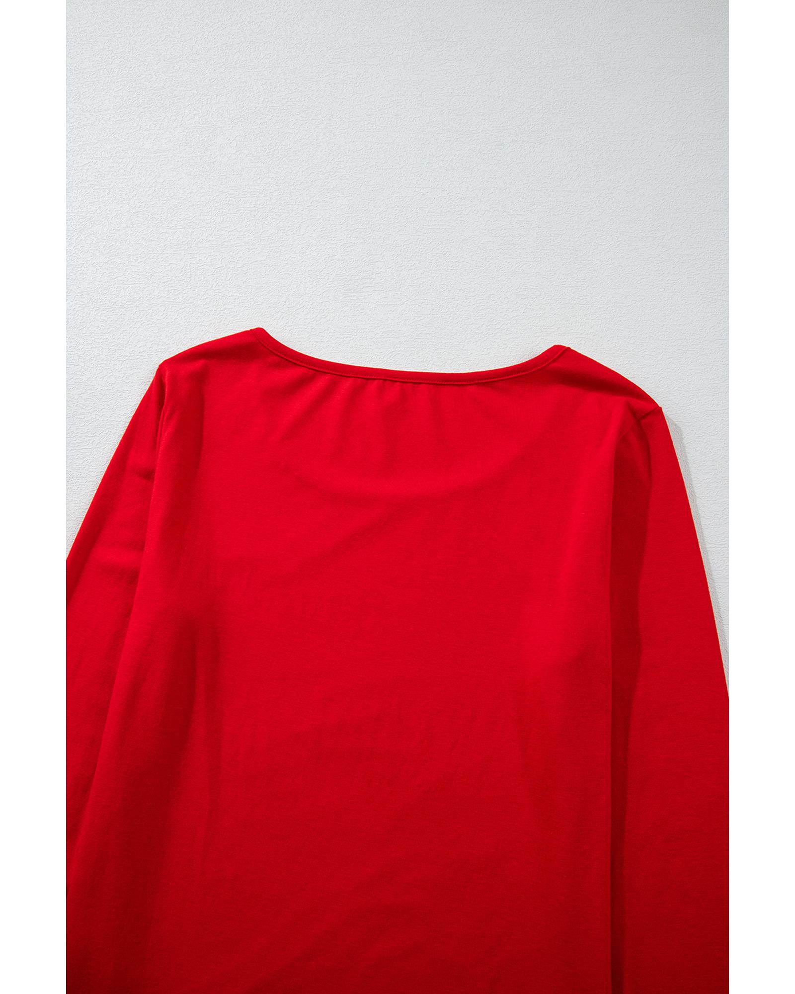 Red Solid Top and Christmas Pants Two Piece Lounge Set – XL