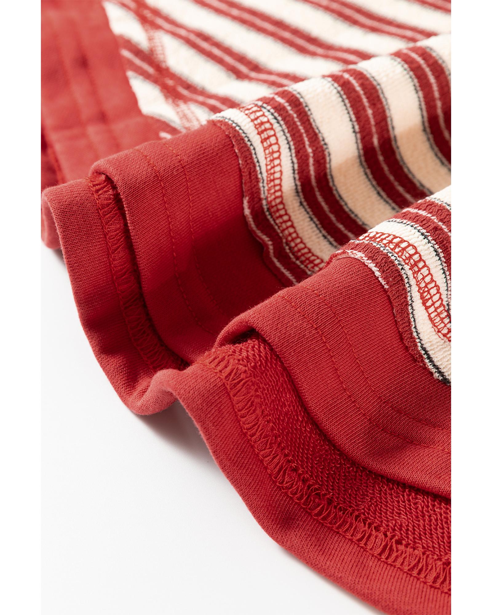 Red Stripe Buttoned V Neck Collared Drop Shoulder Top – M
