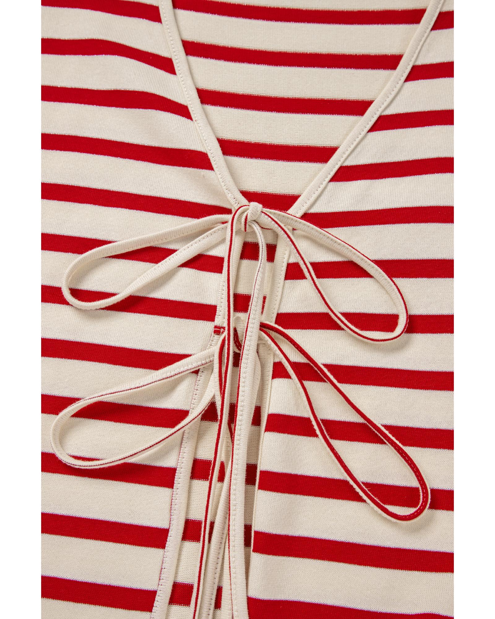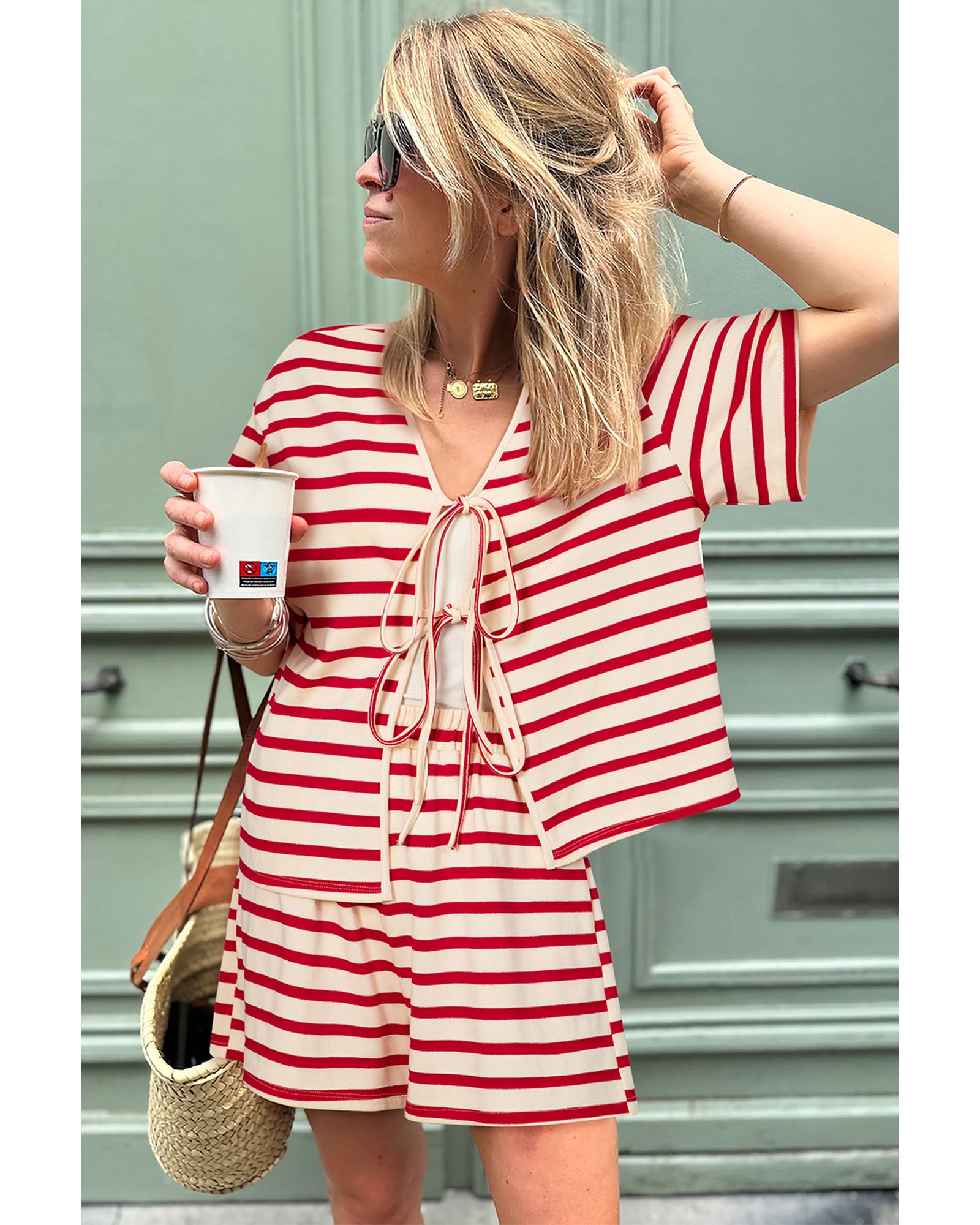 Red Stripe Lace-up Front Top and High Waist Shorts Set – XL