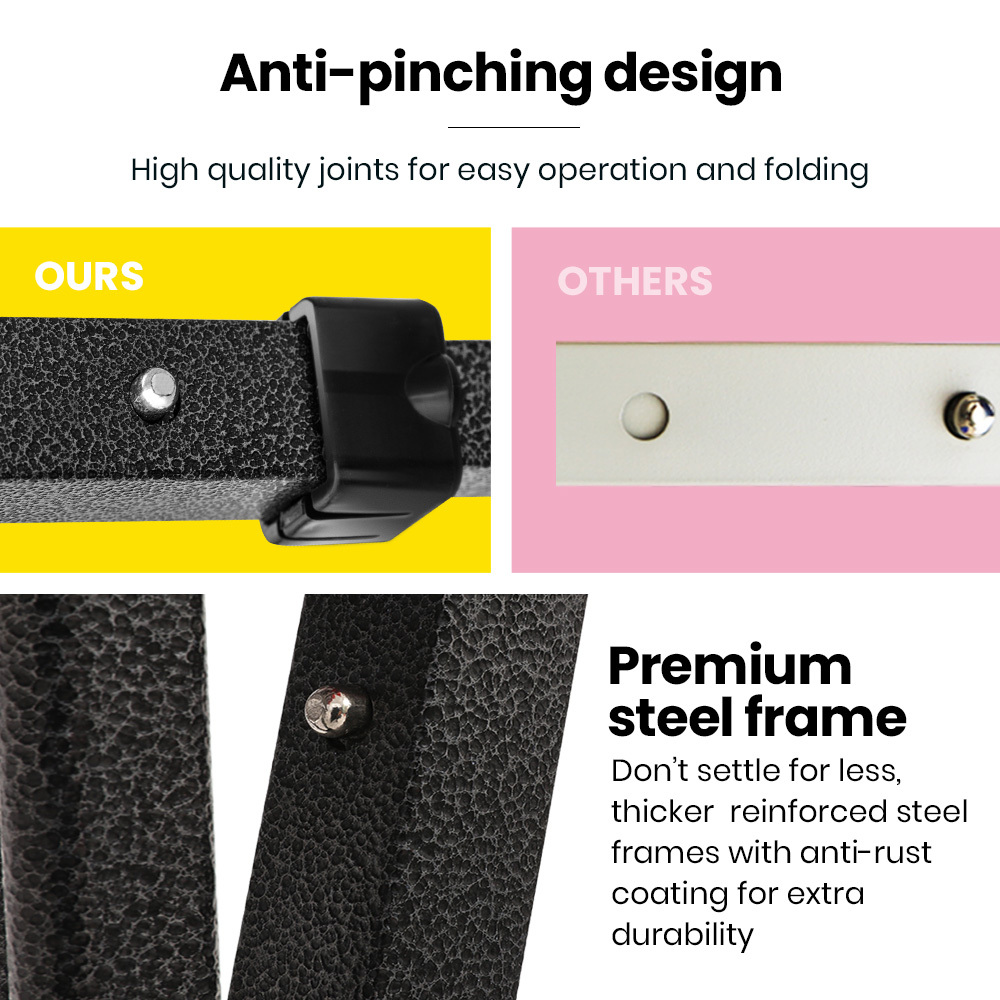 - Durable steel frame with nylon joints for stability