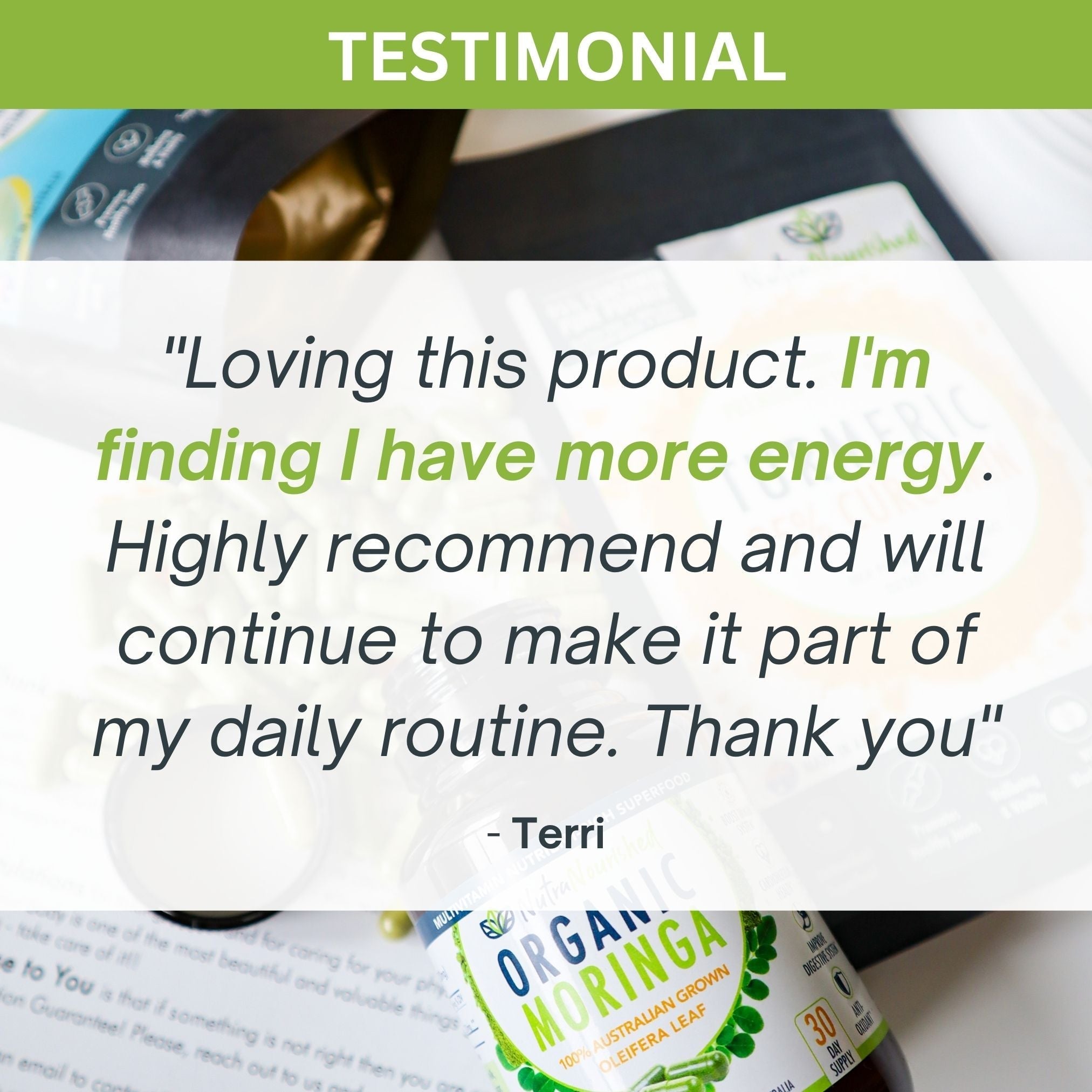 • Each capsule provides 360mg of pure organic moringa leaf powder