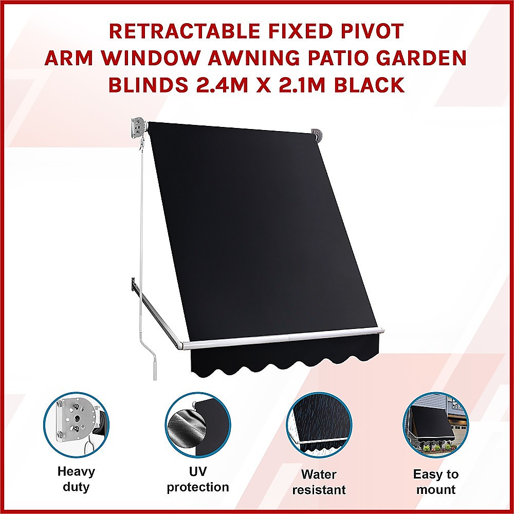 Retractable Fixed Pivot Arm Window Awning Patio Garden Blinds 2.4m x 2.1m Black