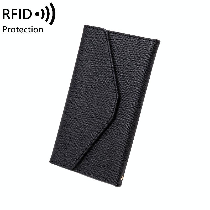 This RFID-blocking passport and card bag offers a secure and compact solution for organizing your travel documents and cards. Crafted from durable and comfortable PU material, it features multiple compartments and a large capacity to keep your items well-organized. The bag is equipped with hardware buttons for added safety and anti-theft protection, and the surface texture design enhances wear and scratch resistance for long-lasting use.