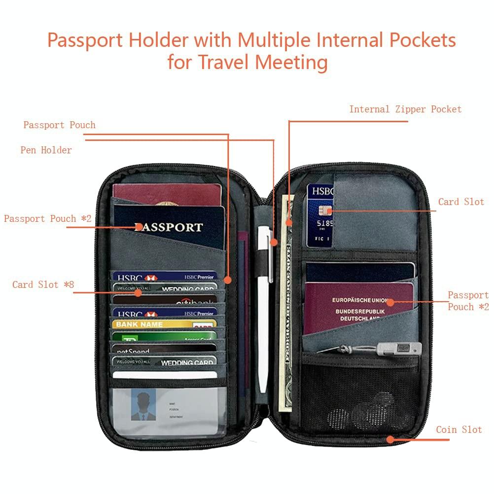 This RFID travel passport and card holder offers a secure and stylish solution for organizing your travel documents and cards. Crafted from lightweight, waterproof, and scratch-resistant oxford fabric, it combines durability with a sleek design. The multi-layer compartments and multiple pockets provide ample storage space for your essentials, making it a practical choice for travelers.