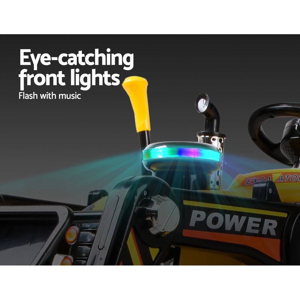 This ride-on bulldozer provides a realistic driving experience for children, allowing them to control movement with a steering wheel and acceleration pedal. It features entertaining functions and safety features such as anti-slip tyres, making it suitable for young kids to explore and have fun.
