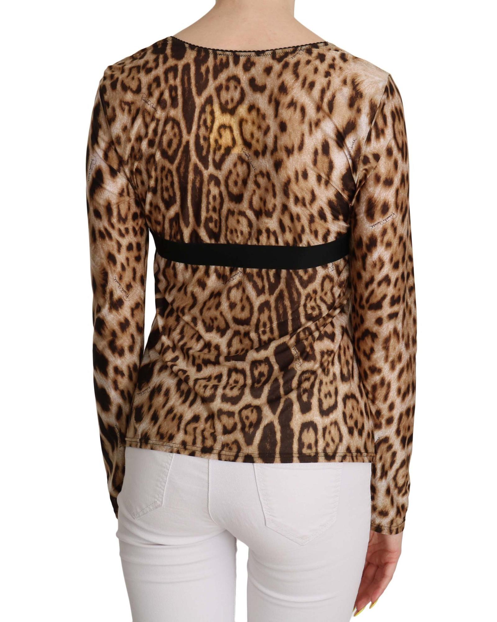 Roberto Cavalli Long Sleeve Round Neck Leopard Top 46 IT Women