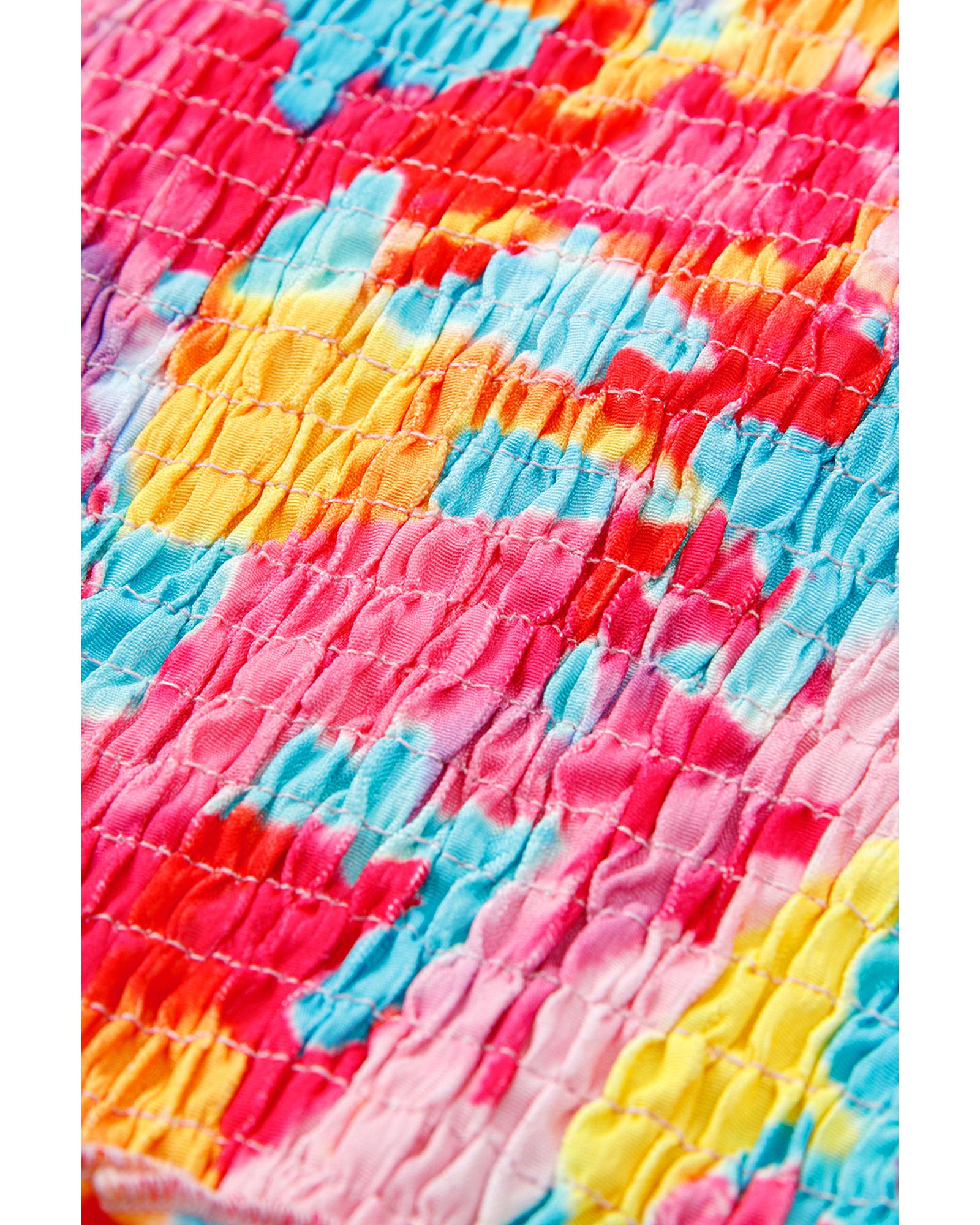 Rose Abstract Printed Puff Sleeve Square Neck Smocked Bust Tied Back Plus Size Dress – 4X