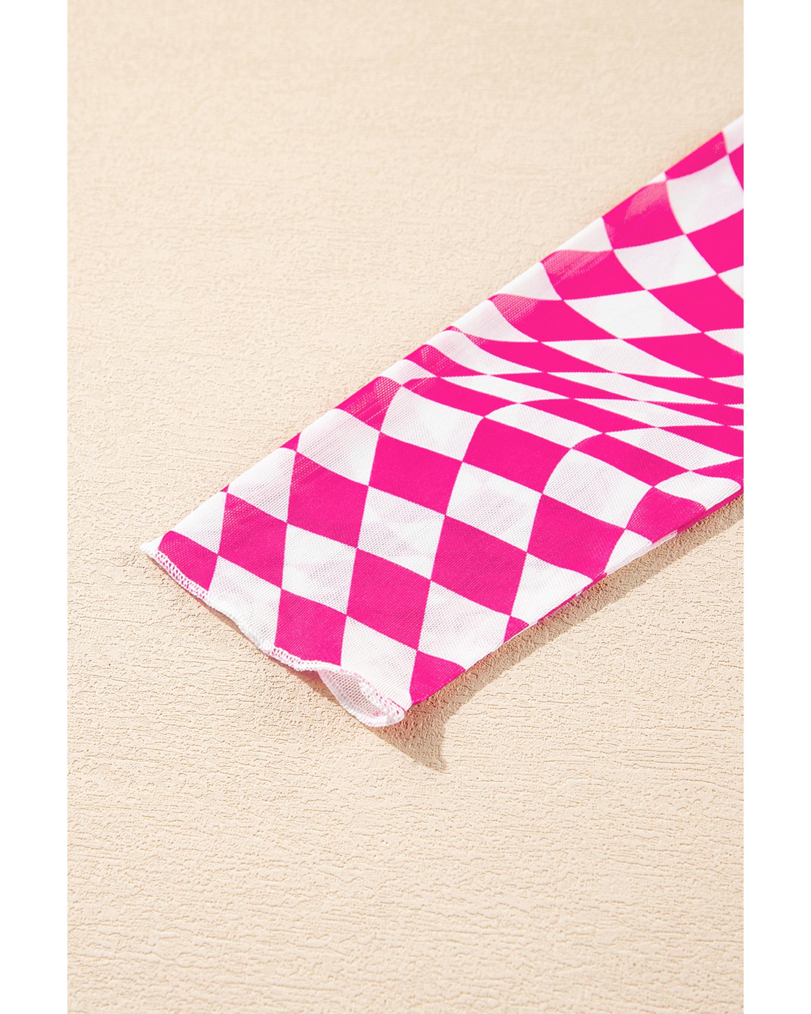 This checkered mesh long sleeve top features a classic pattern and a comfortable mock neck design, making it a versatile addition to your wardrobe. Crafted from stretchy material, it offers both style and comfort for various occasions and seasons.