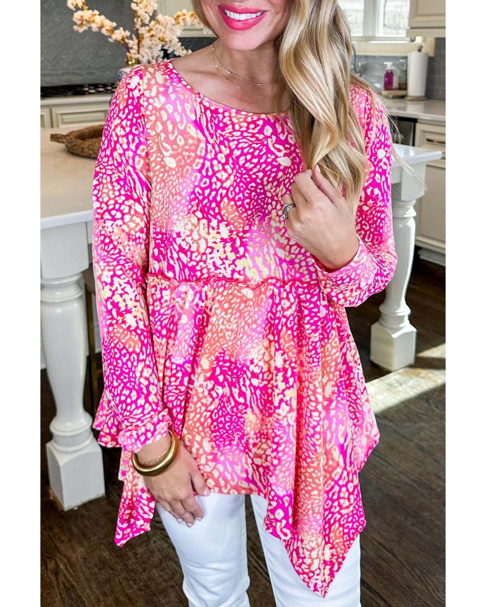 Rose Classic Leopard Print Handkerchief Hem Tunic Top – M