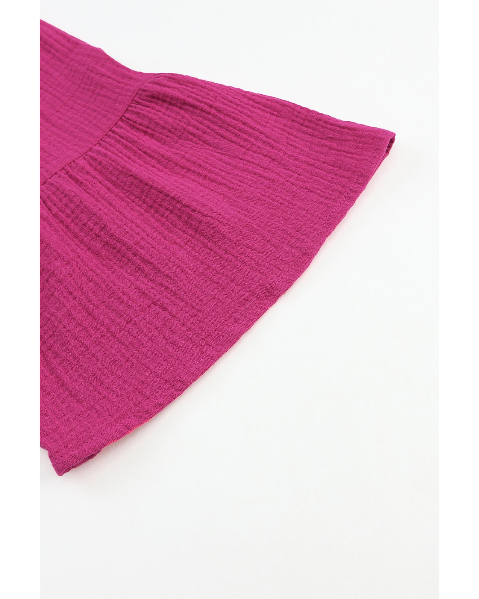 Rose Crinkled Tiered Split Neck Shirt Dress – S
