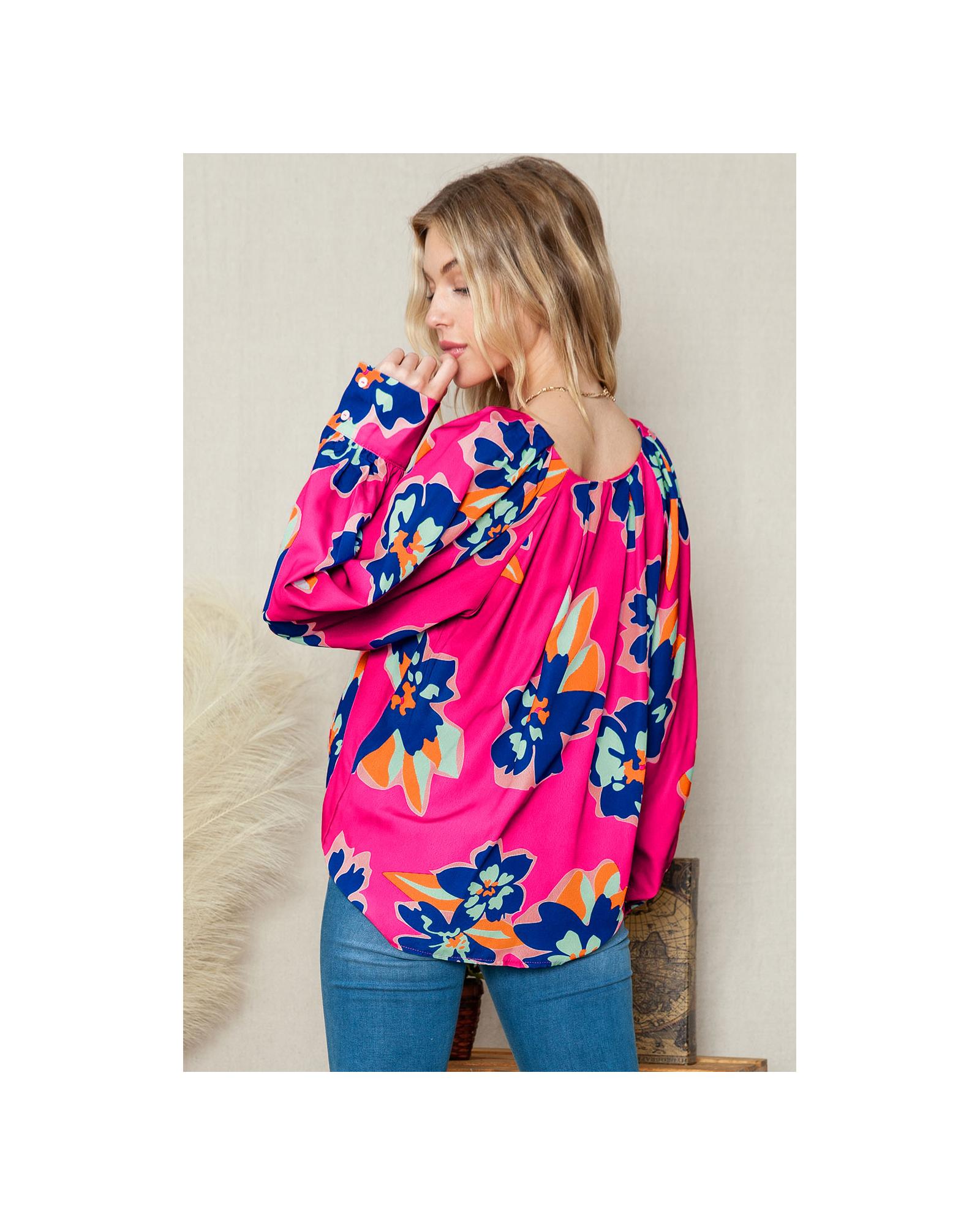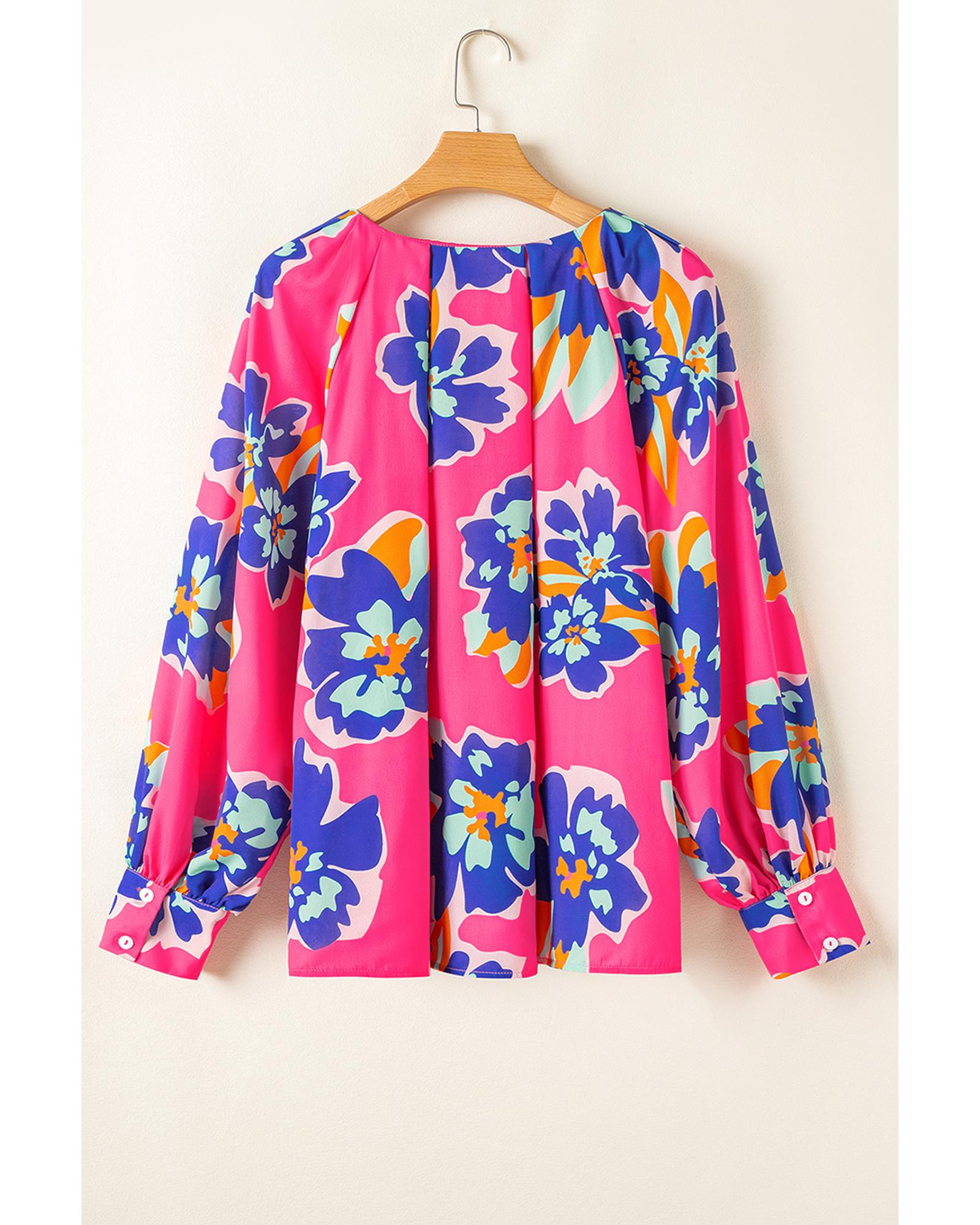 This floral patterned blouse features a flattering V neckline and balloon sleeves, offering a relaxed and stylish fit. Designed with a trendy silhouette, it is suitable for plus size wearers and perfect for various occasions.