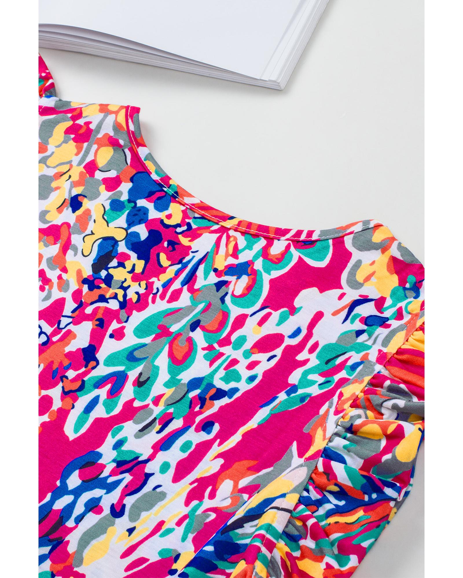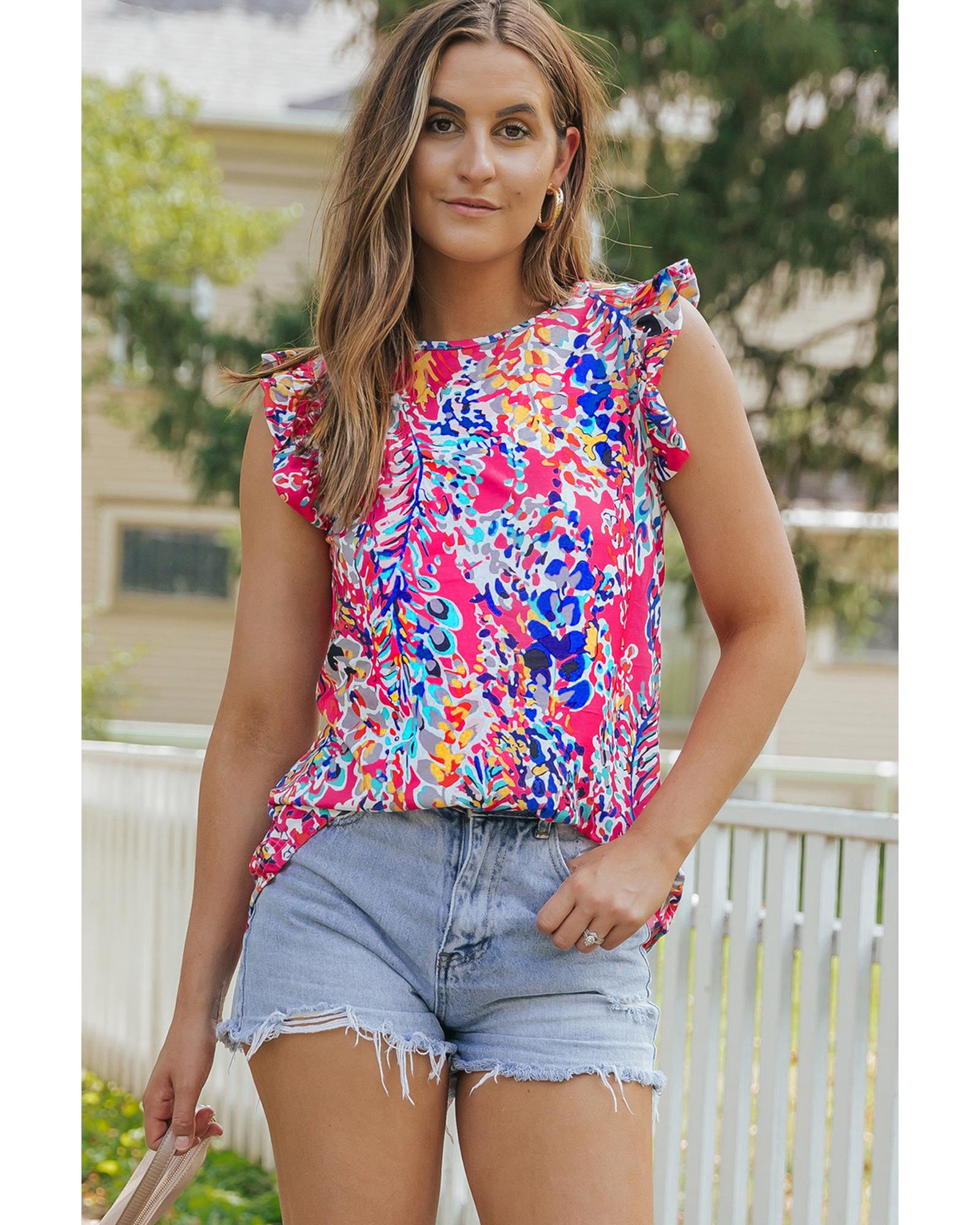 This floral print tank top features a stylish design with ruffle sleeves, making it a versatile addition to your casual wardrobe. Crafted from comfortable material, it offers a relaxed fit suitable for everyday wear. The sleeveless style pairs effortlessly with various casual outfits, especially white skinny jeans or casual pants.