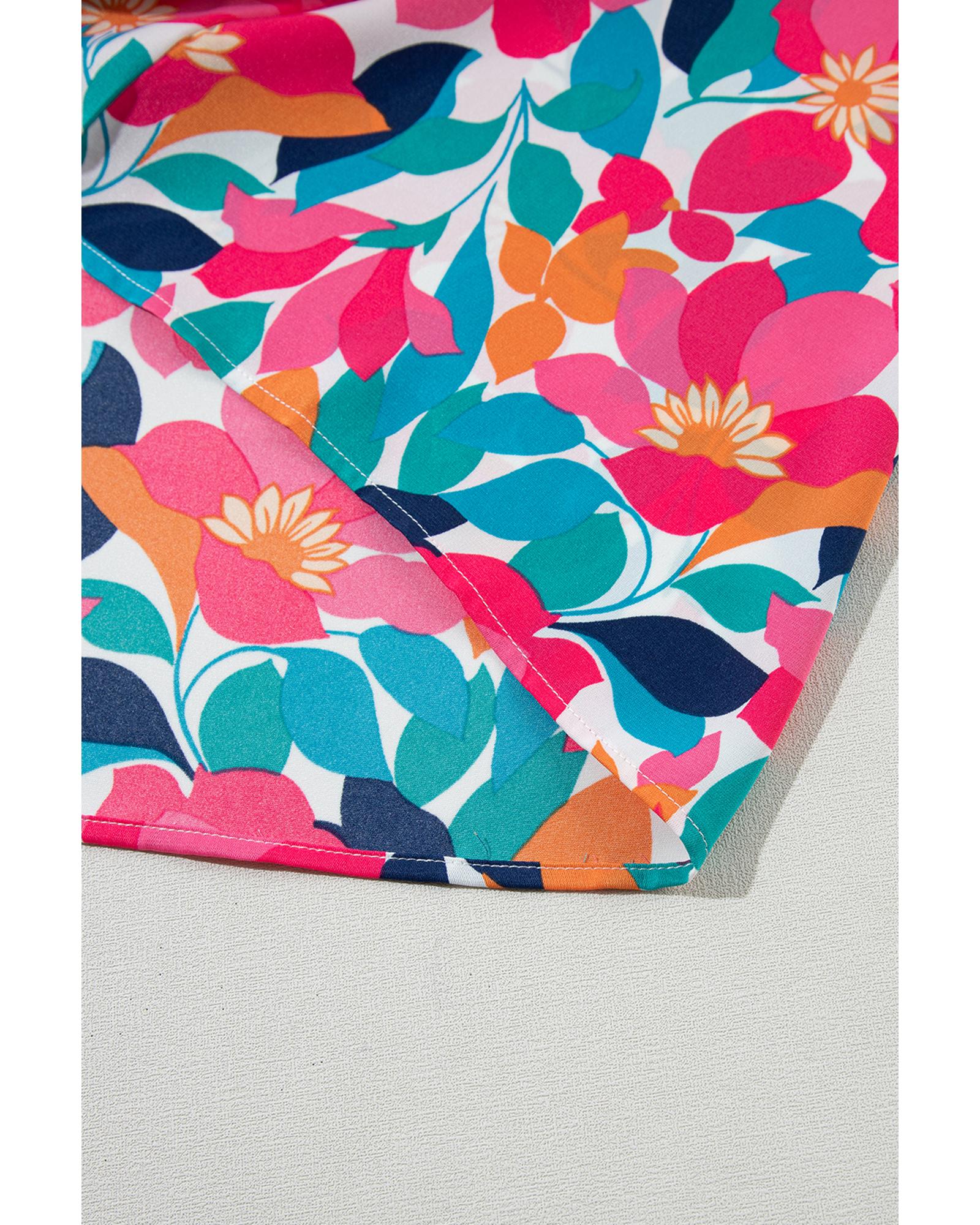This floral maxi dress features a trendy fitted silhouette with a vibrant floral pattern, perfect for a stylish and elegant look. The design includes a twisted front and a smocked back, offering both comfort and a fashionable appearance. The sleeveless, tiered style adds a touch of femininity, making it suitable for various occasions.