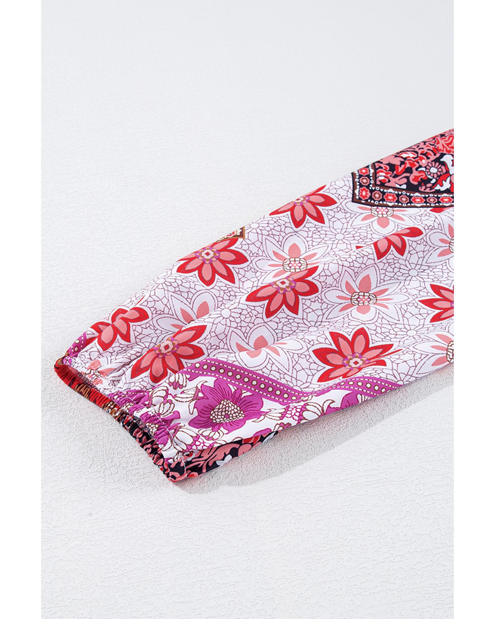 Rose Mixed Floral Long Sleeve V Neck Lace-up Hollowed Back Plus Size Dress – 3X